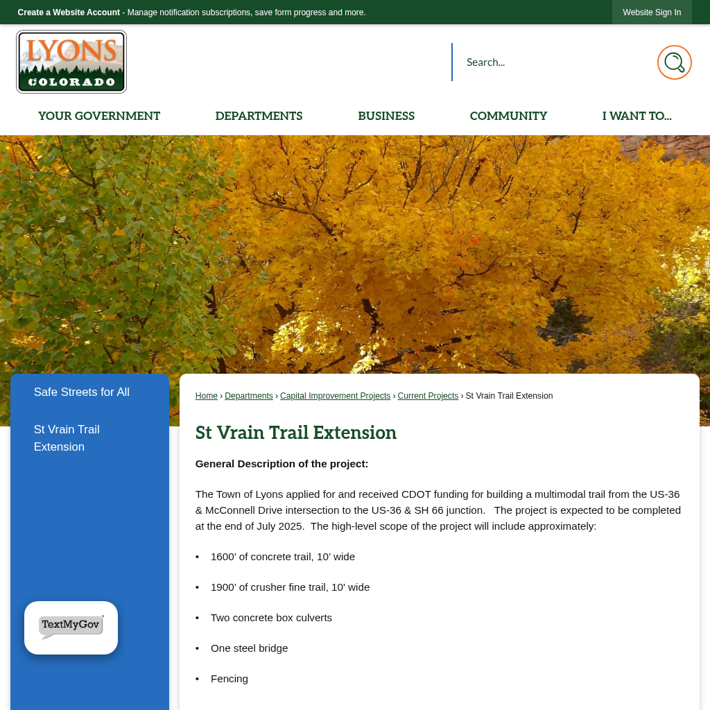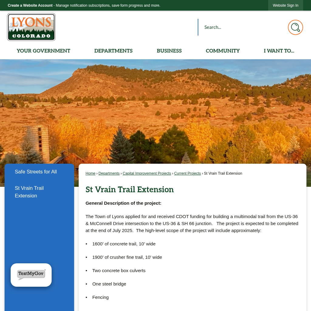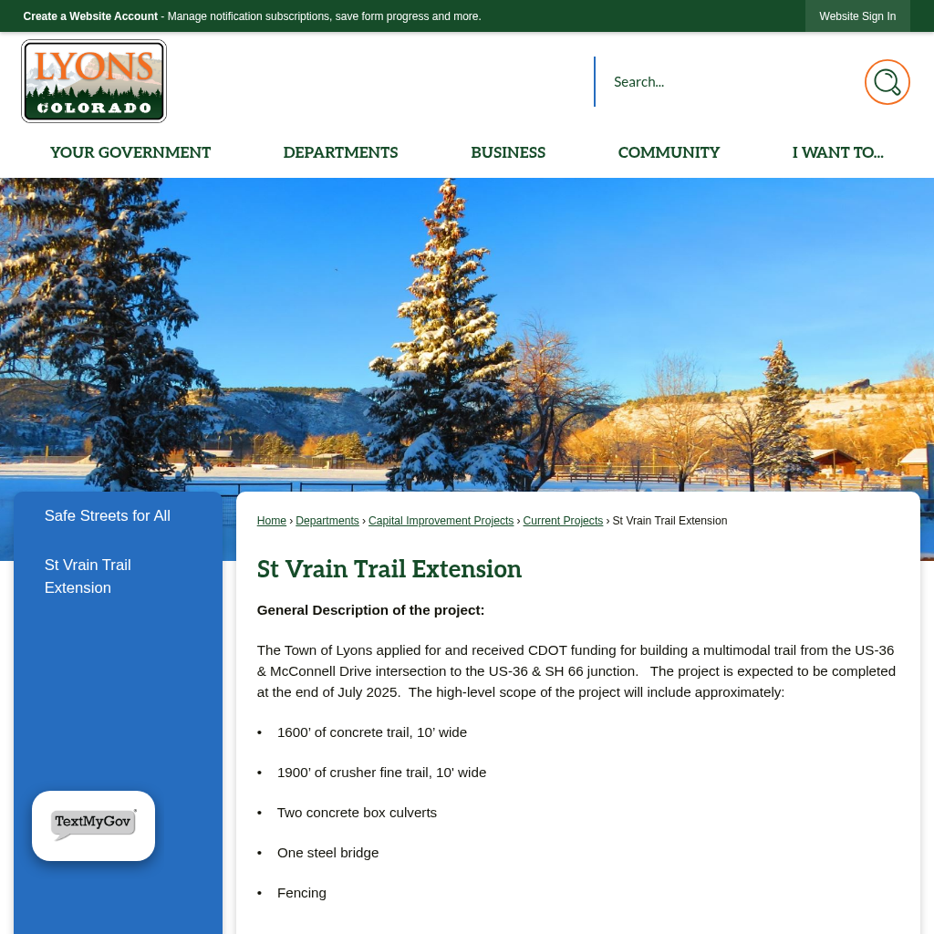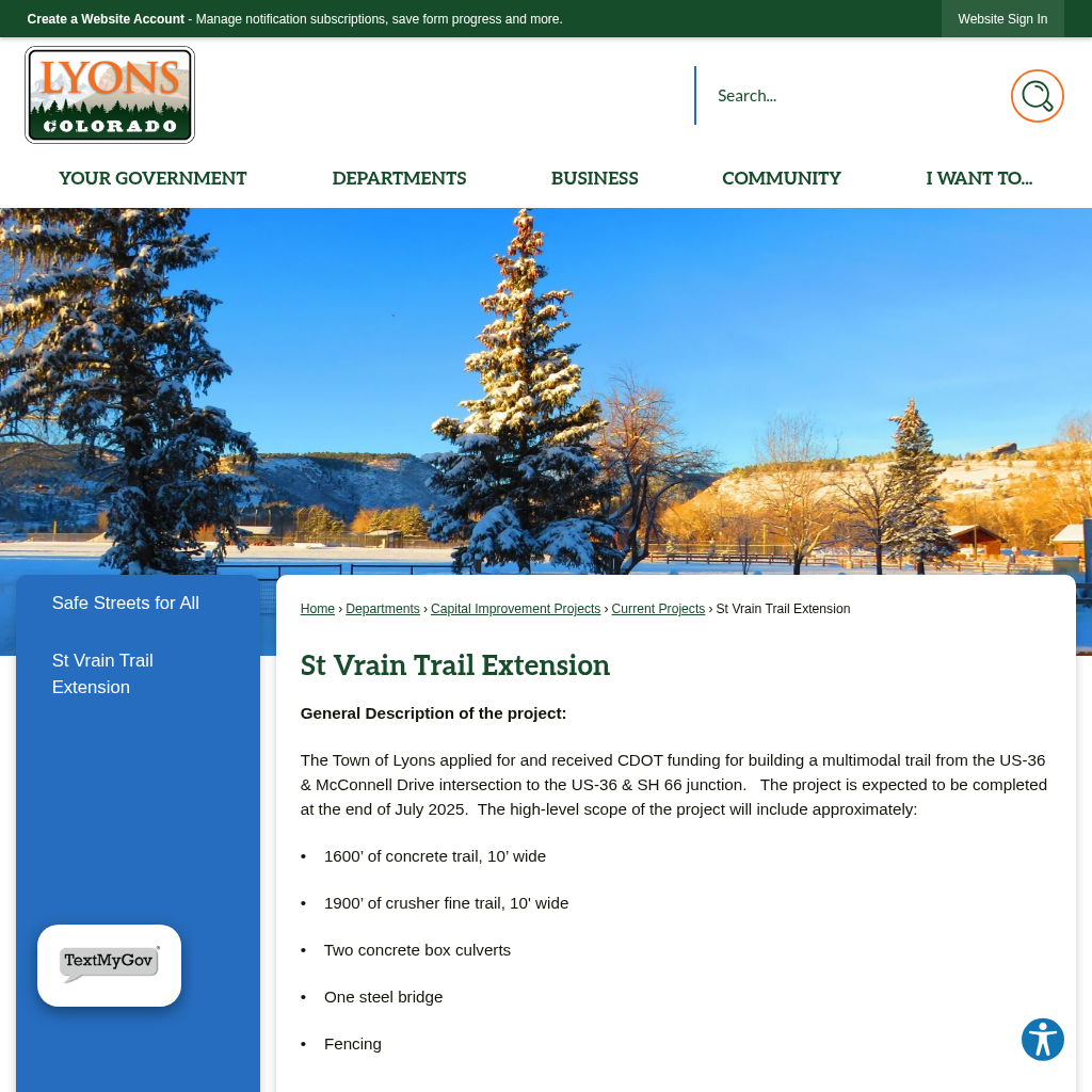 The webpage indicates that the St Trvain Trail Extension project is "expected to be completed at the end of July 2025," which suggests it is still under construction and not yet fully open. The description of the project focuses on the planned features and construction timeline, with no mention of the project being completed or the trail being open.