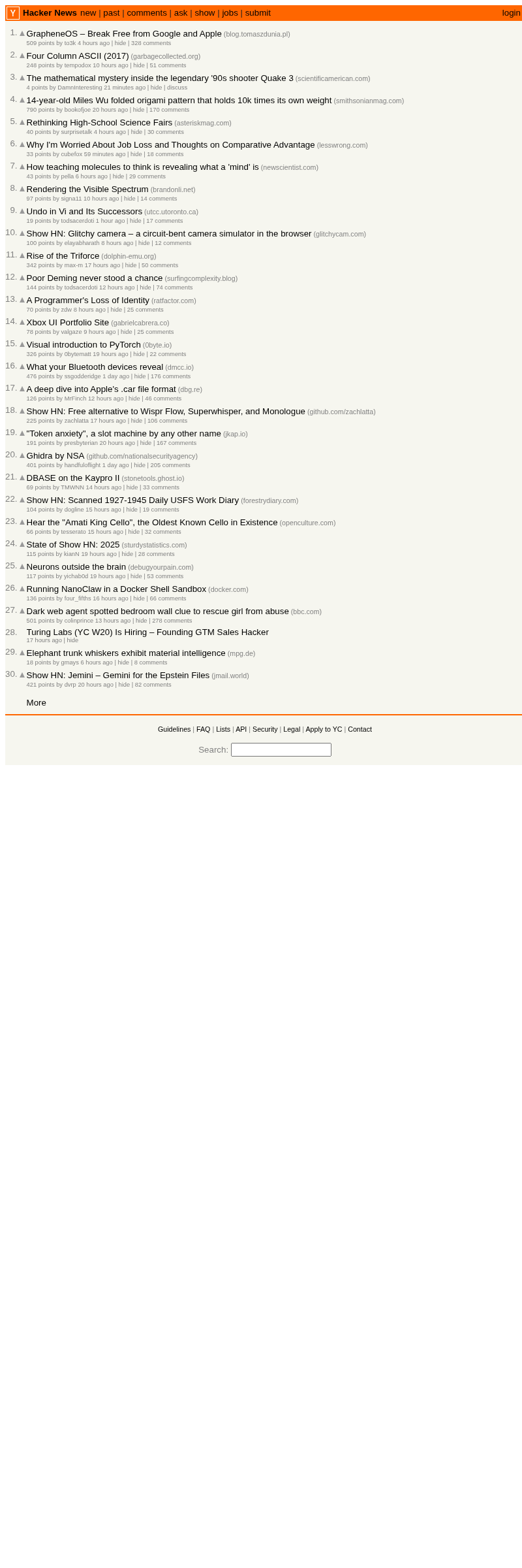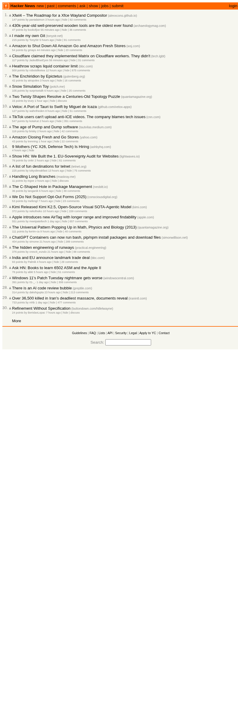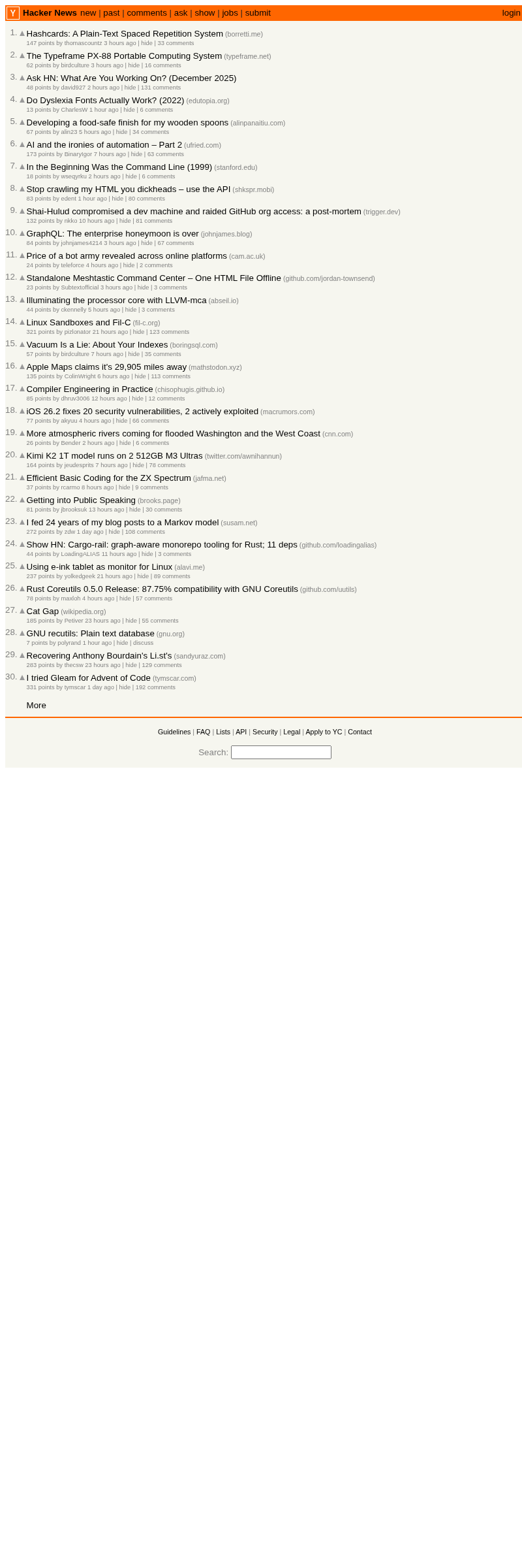 No post on brightwheel is present in the Hacker News list on this page; scanning the 30 titles/links, none contain 'brightwheel'.