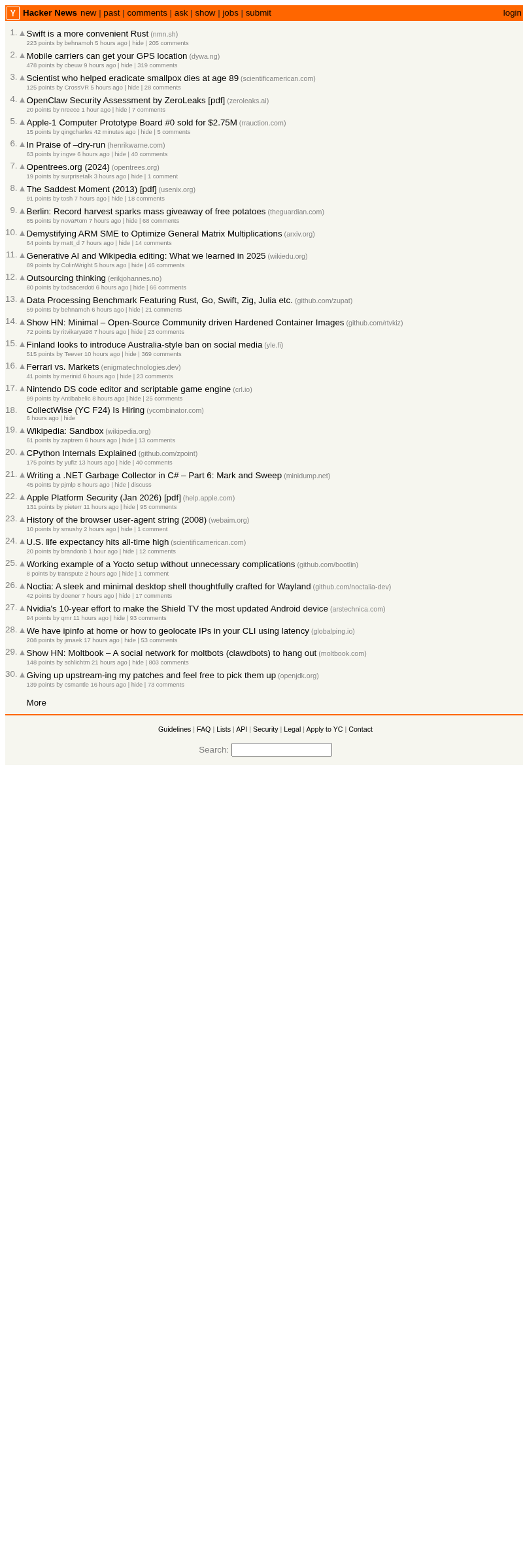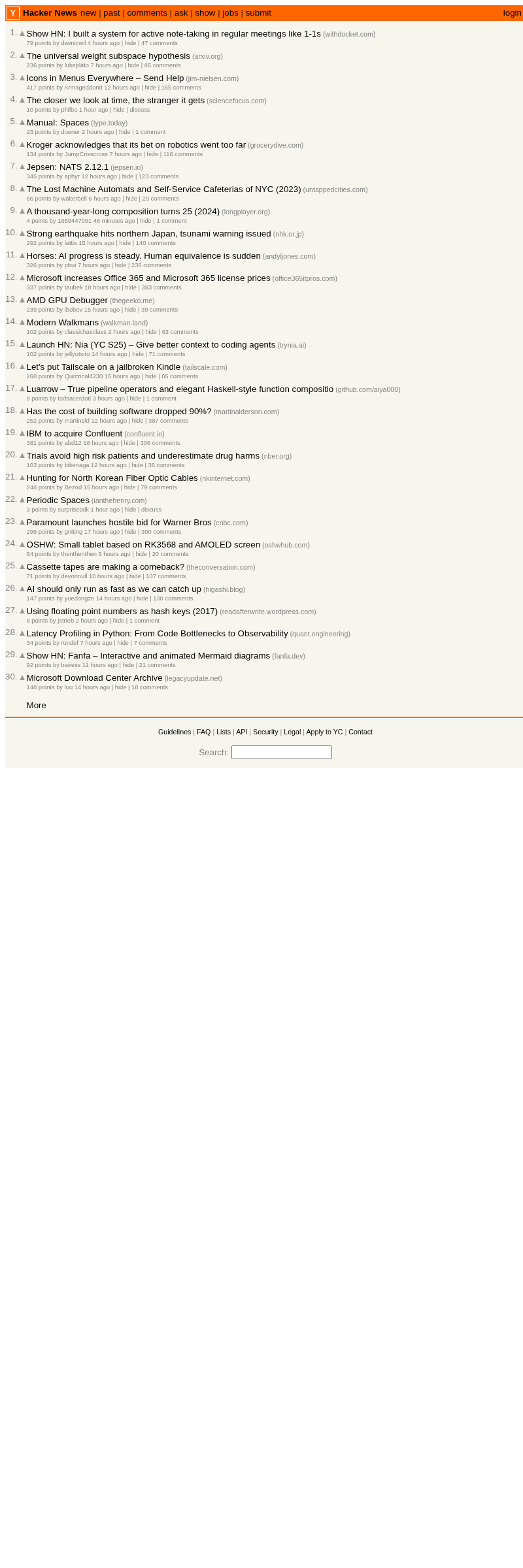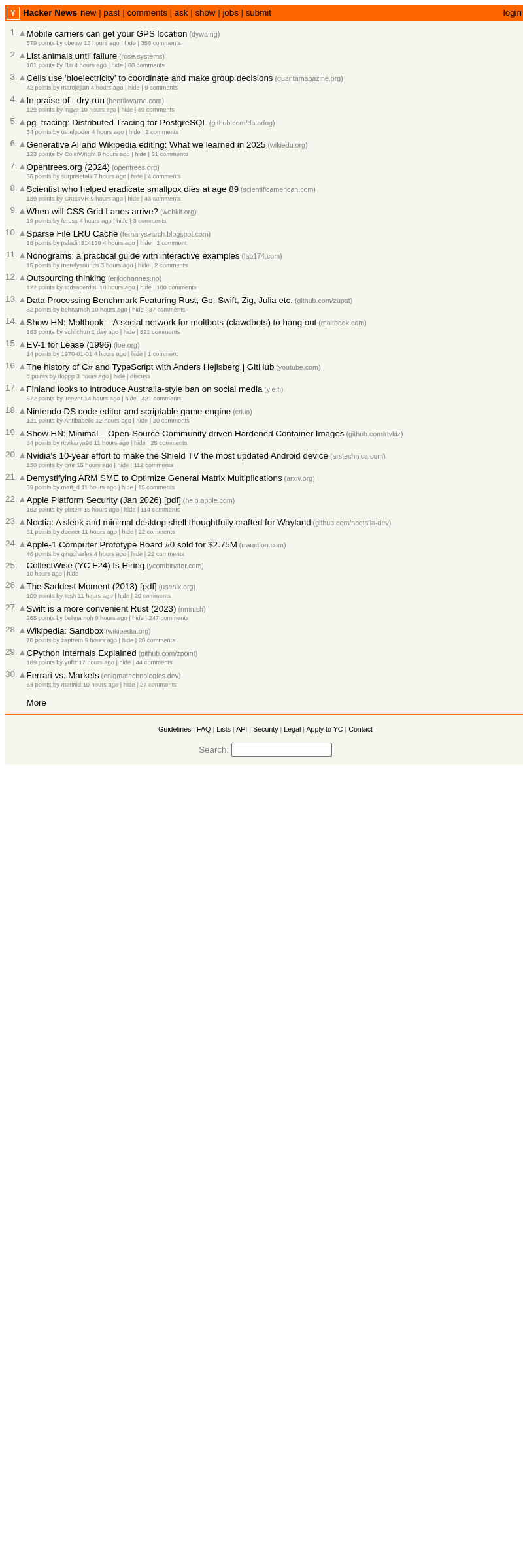 No post on brightwheel is present in the Hacker News list on this page; scanning the 30 titles/links, none contain 'brightwheel'.