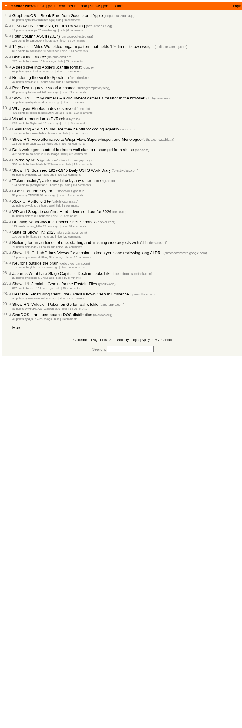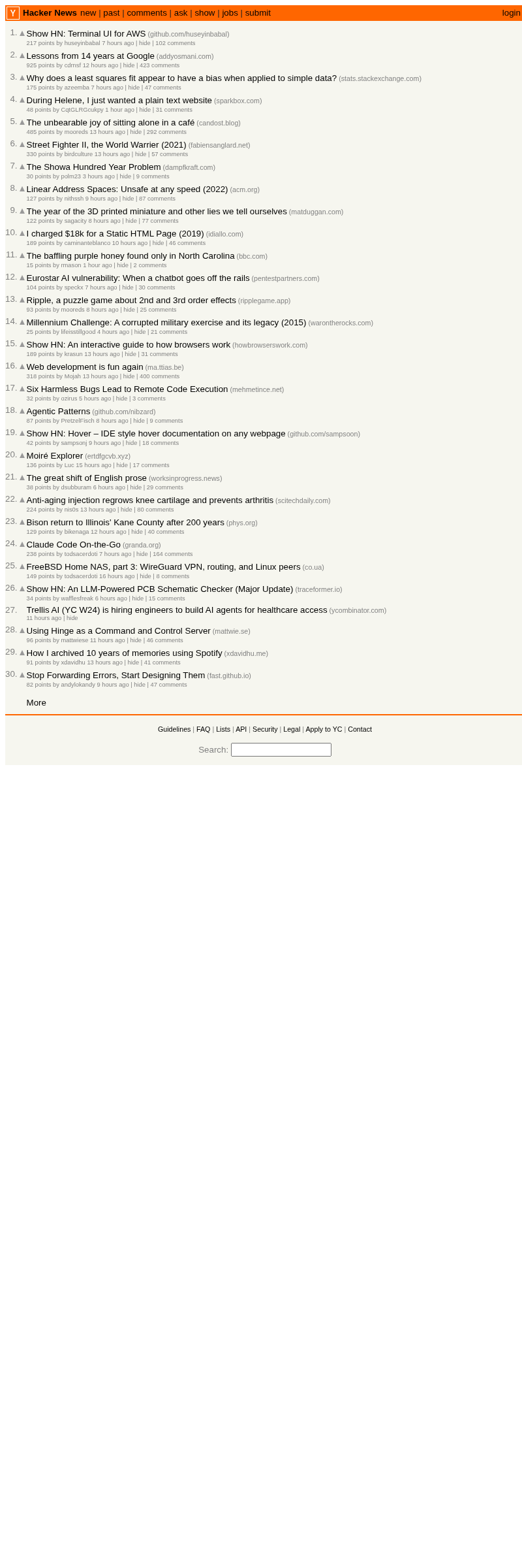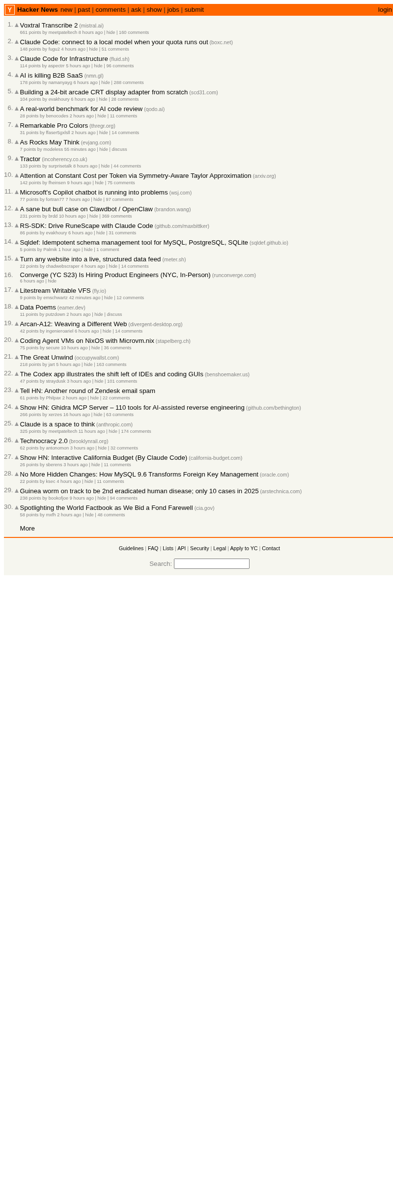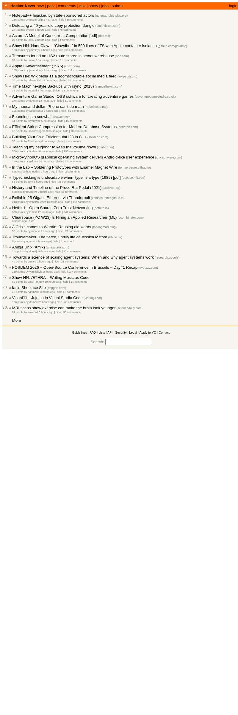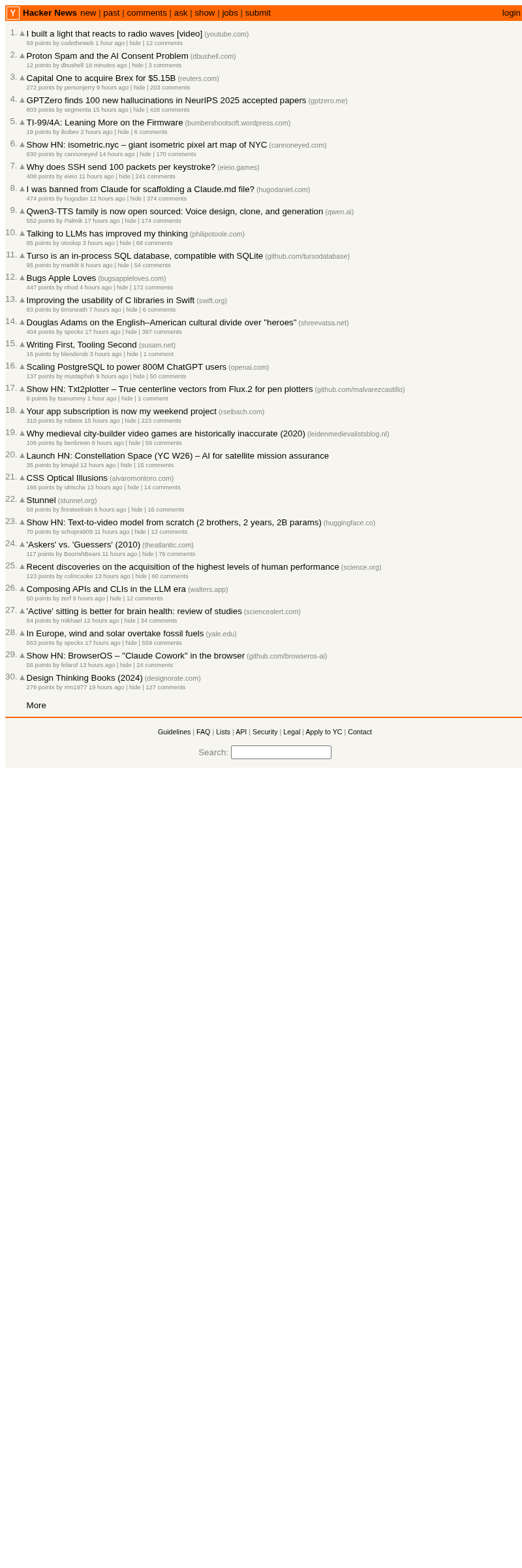 The list shows 30 Hacker News posts. I scanned the titles and domains for the term 'brightwheel' and found no matches; none of the posts mention brightwheel.