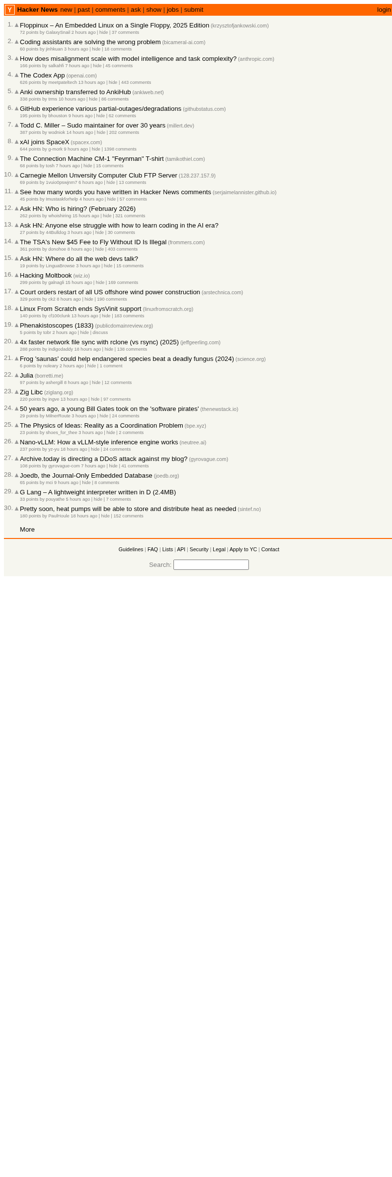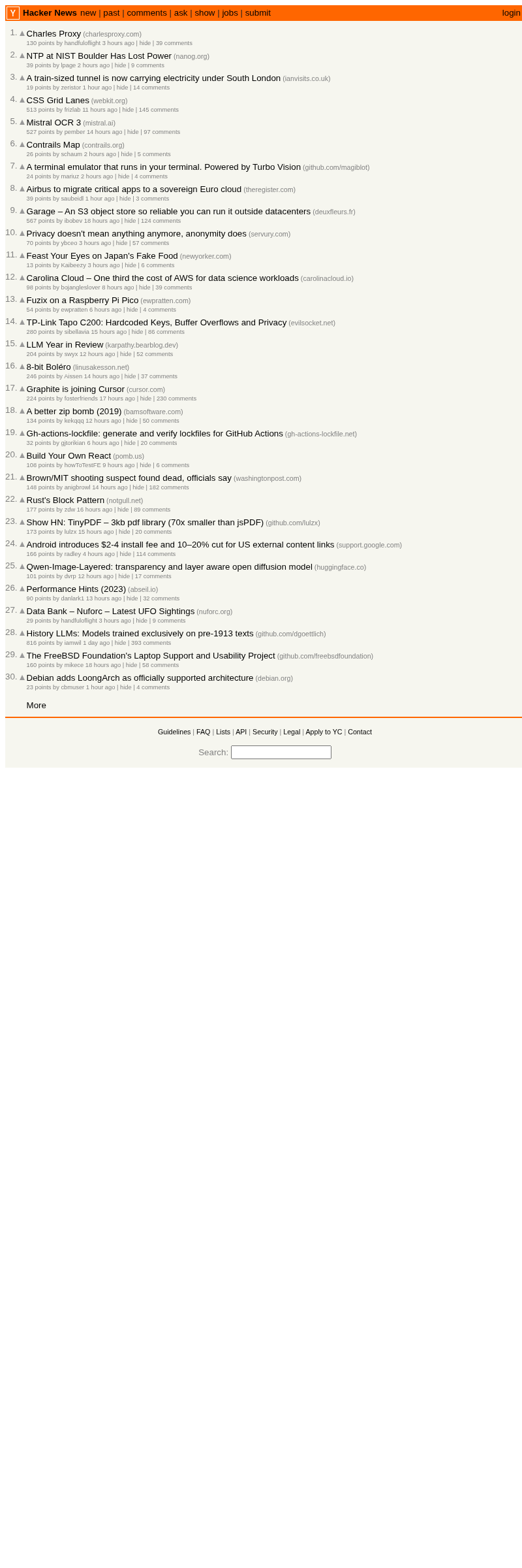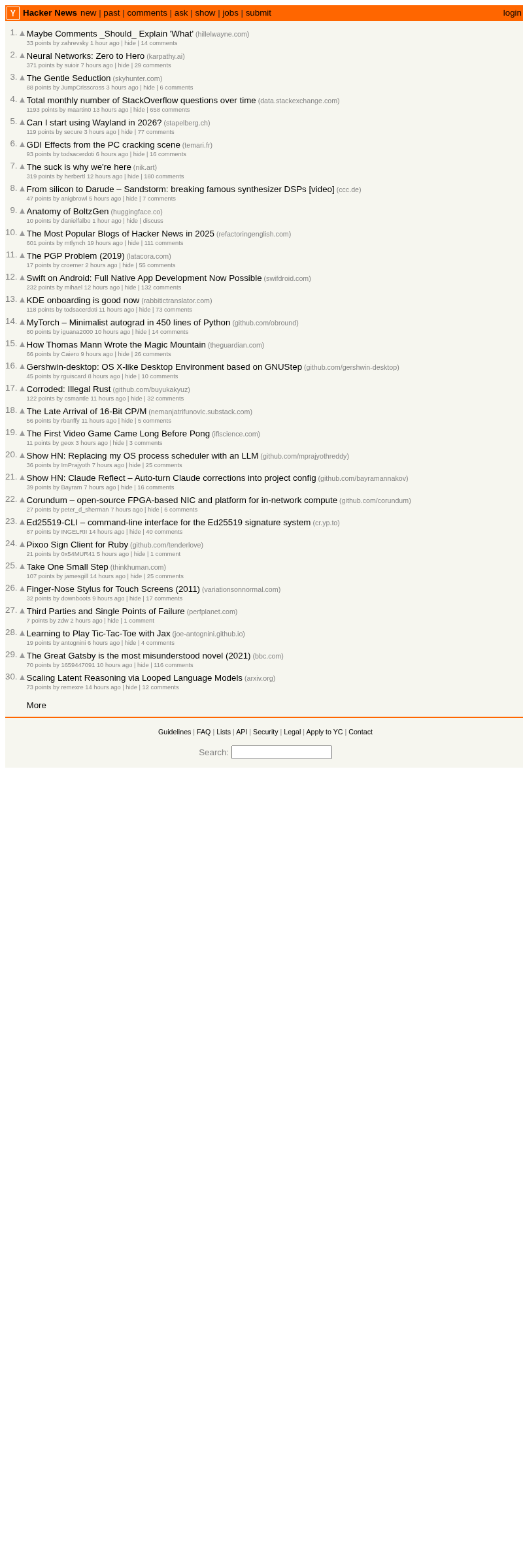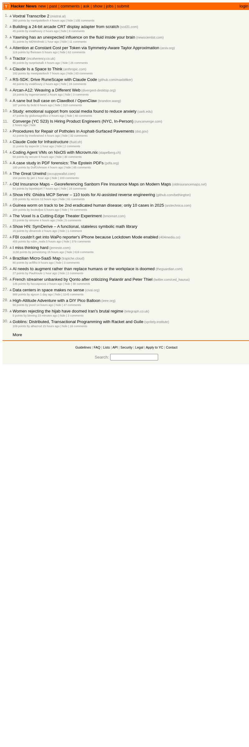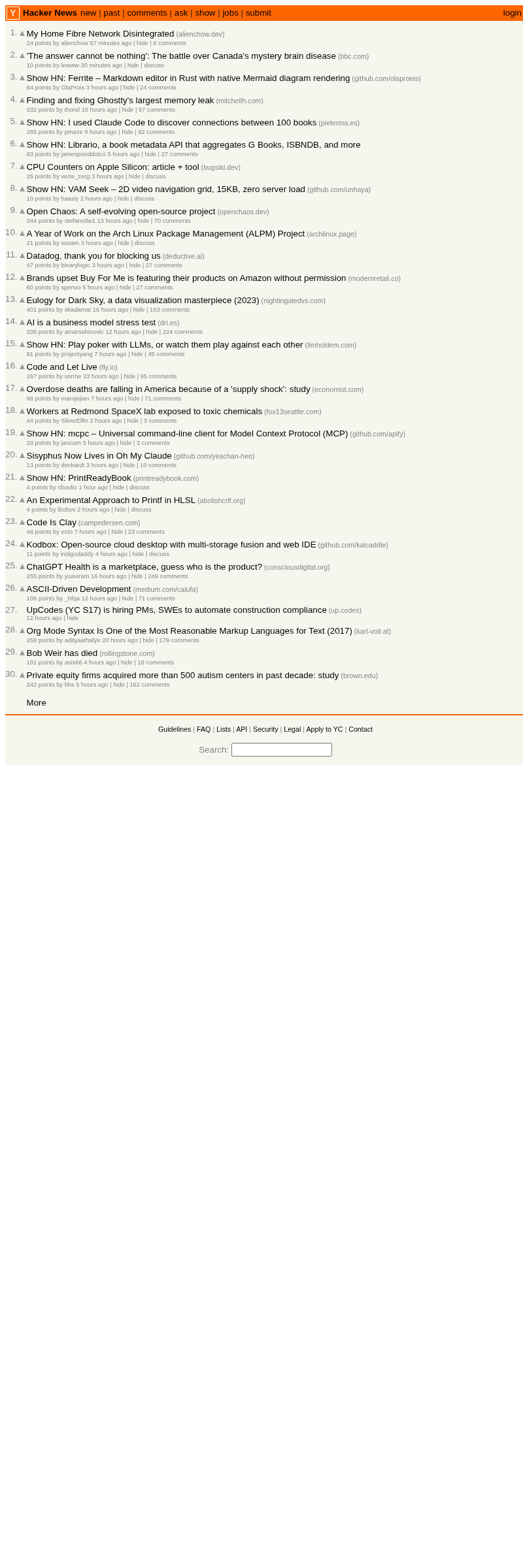 The list shows 30 Hacker News posts. I scanned the titles and domains for the term 'brightwheel' and found no matches; none of the posts mention brightwheel.