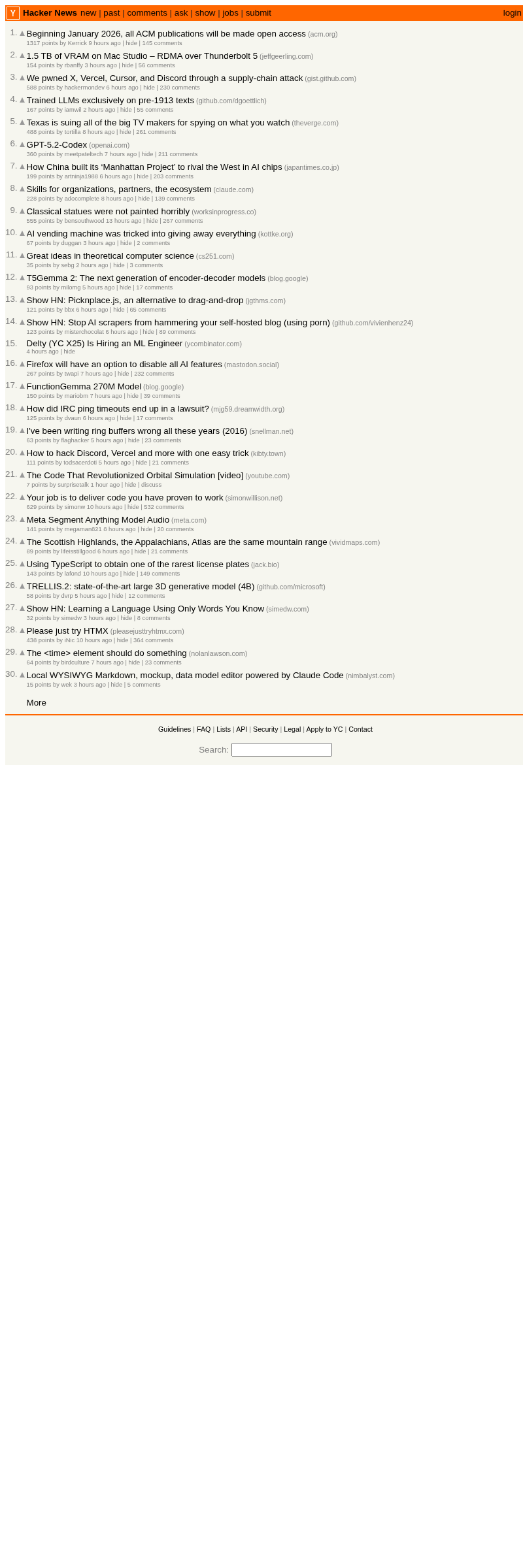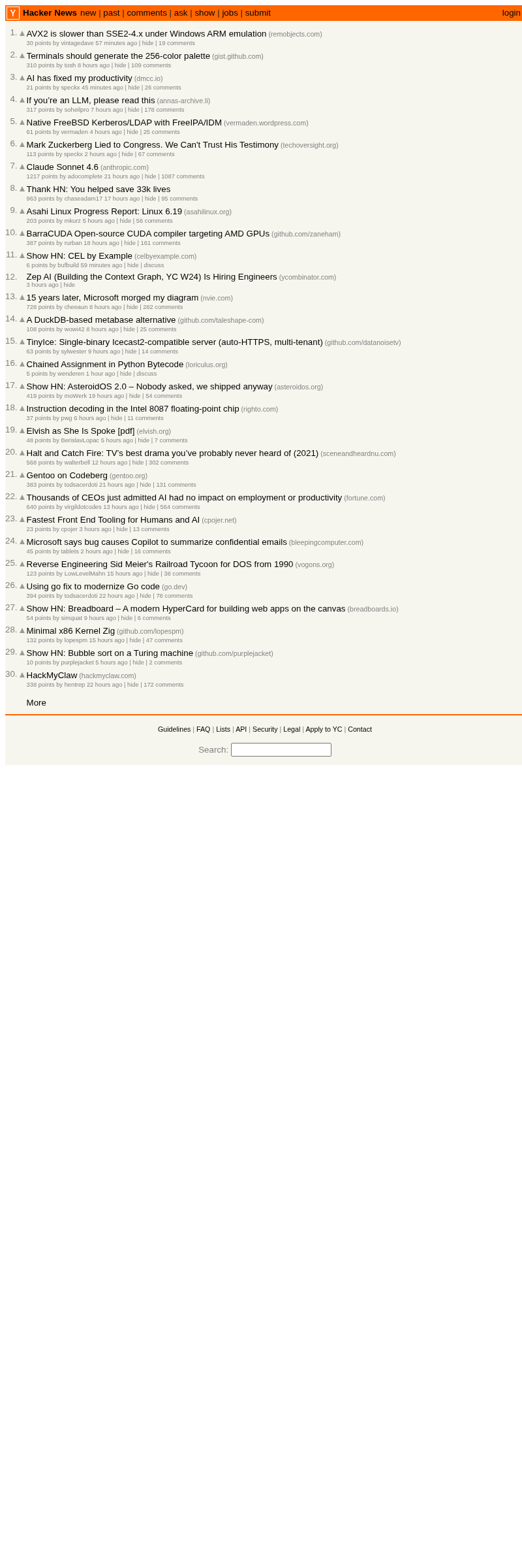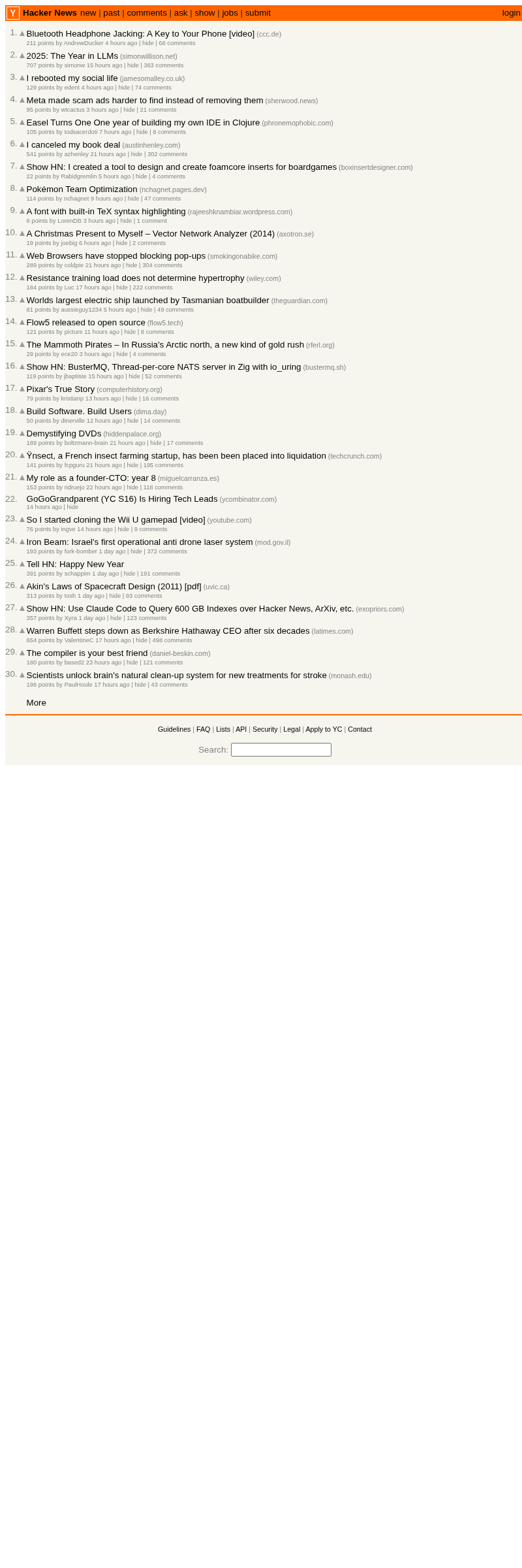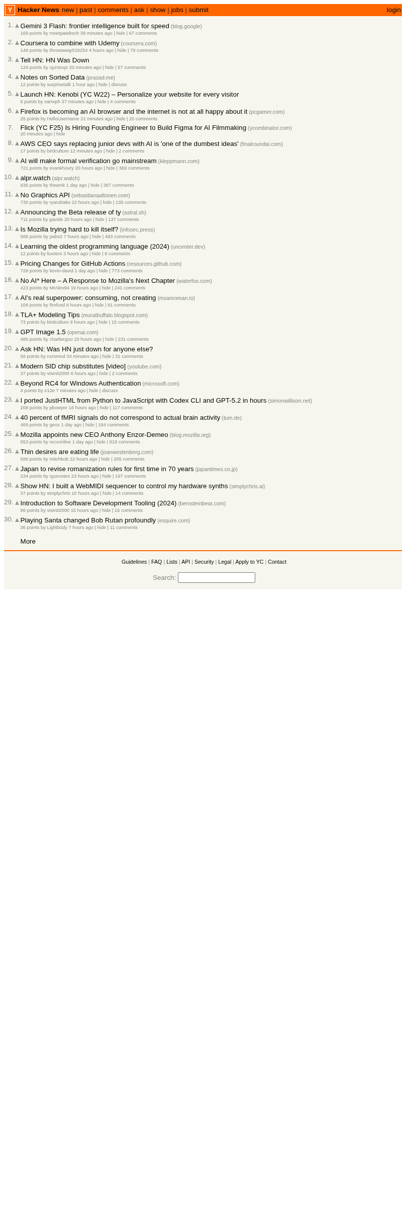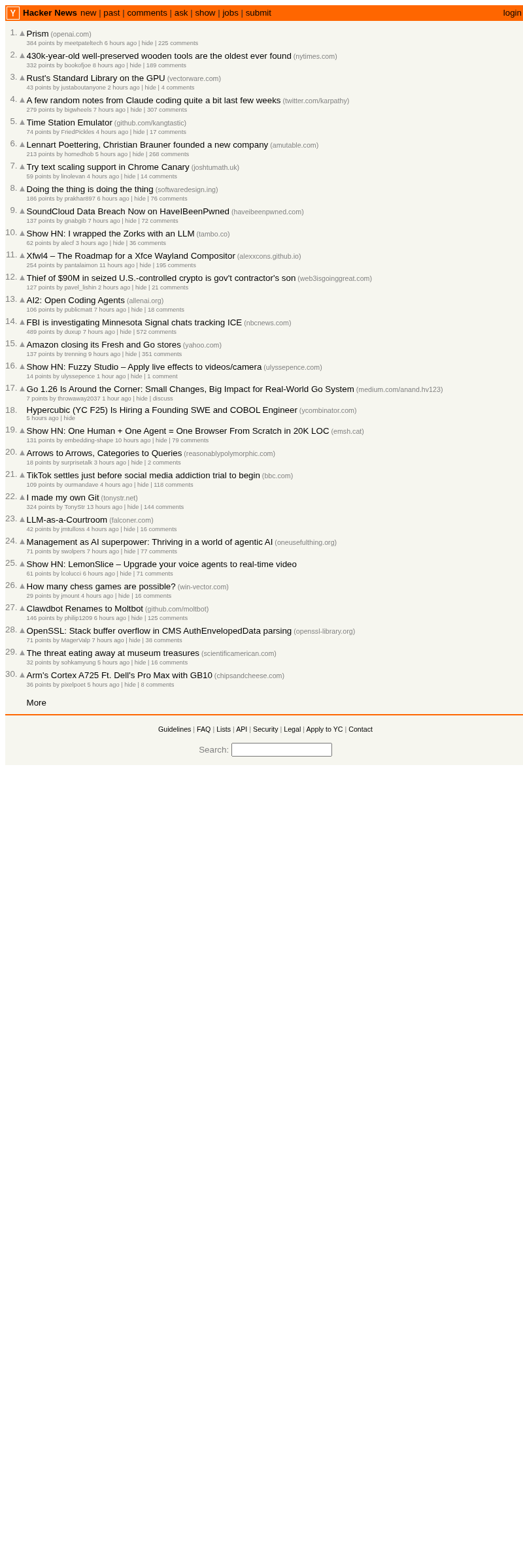 The list shows 30 Hacker News posts. I scanned the titles and domains for the term 'brightwheel' and found no matches; none of the posts mention brightwheel.