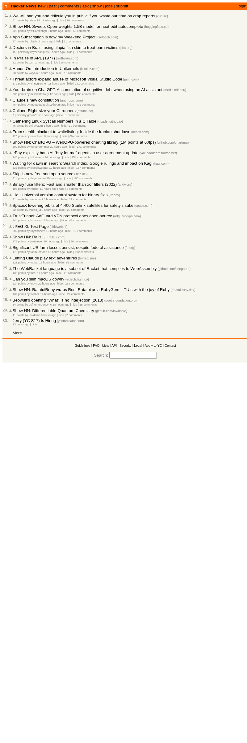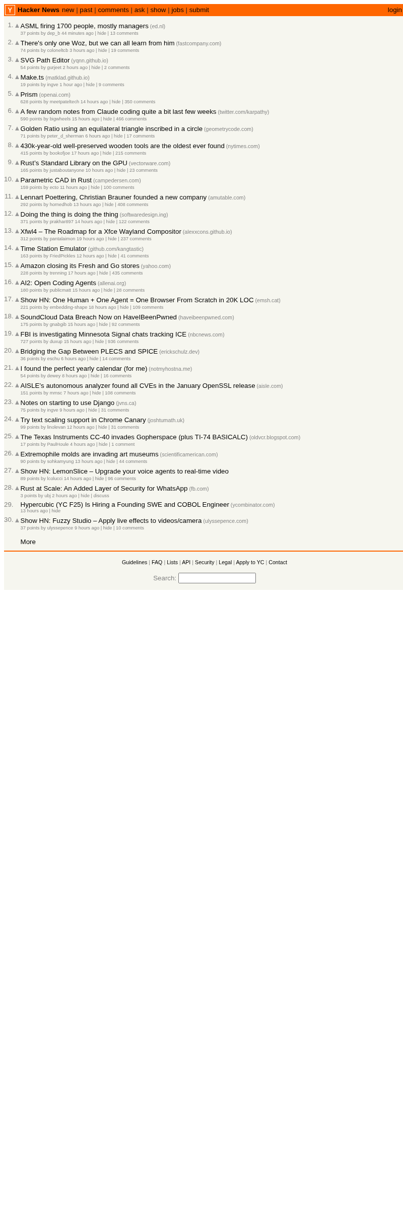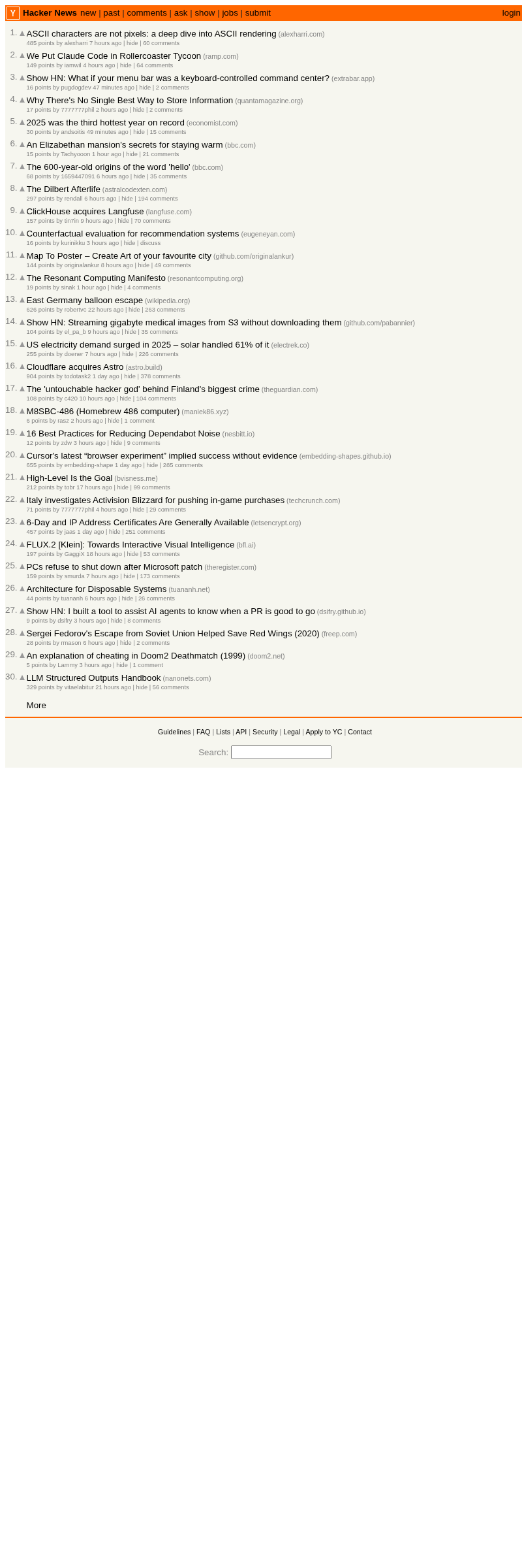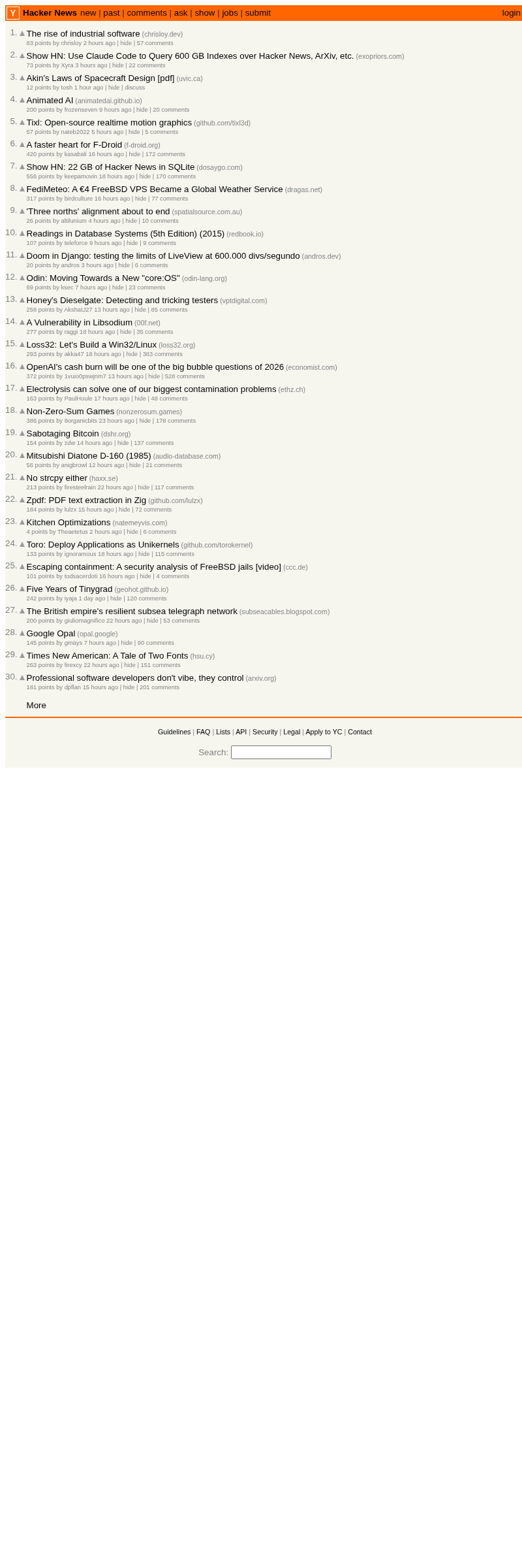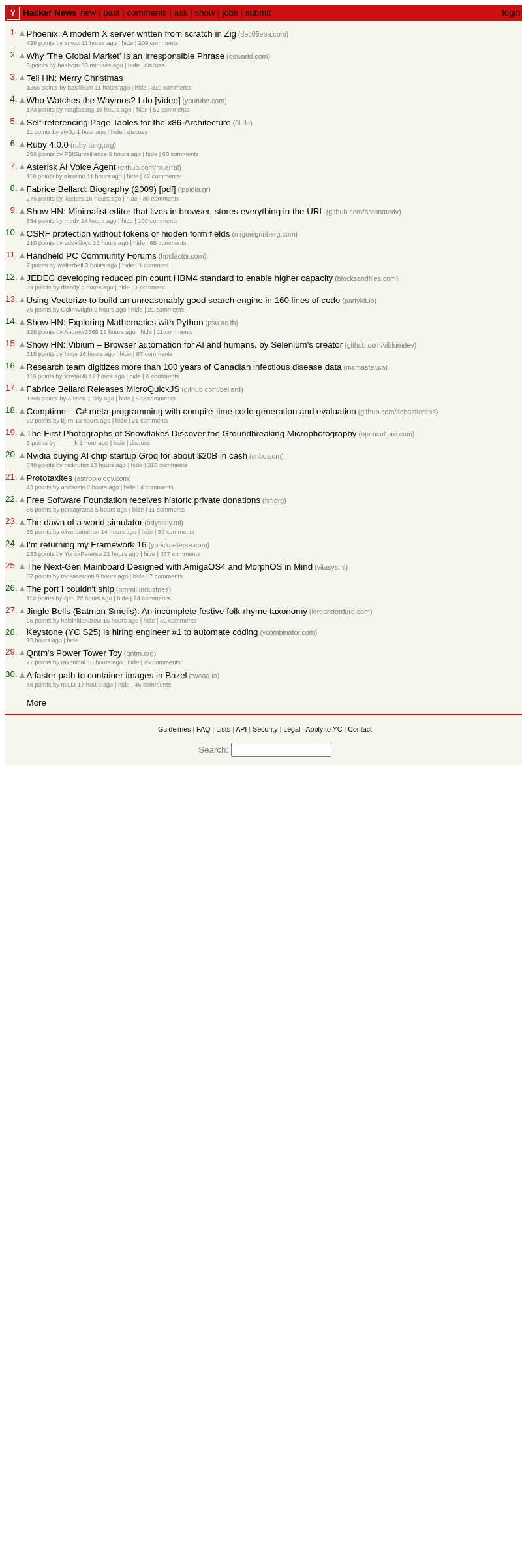 The list shows 30 Hacker News posts. I scanned the titles and domains for the term 'brightwheel' and found no matches; none of the posts mention brightwheel.