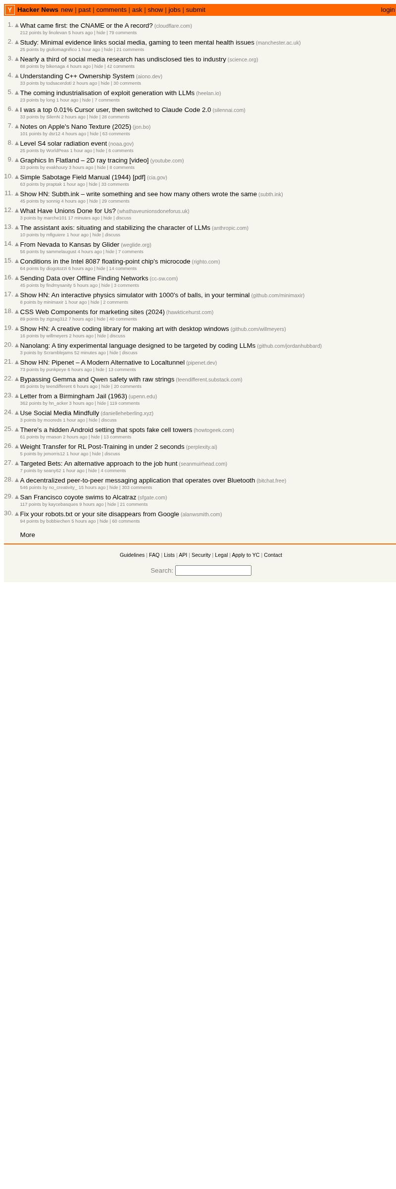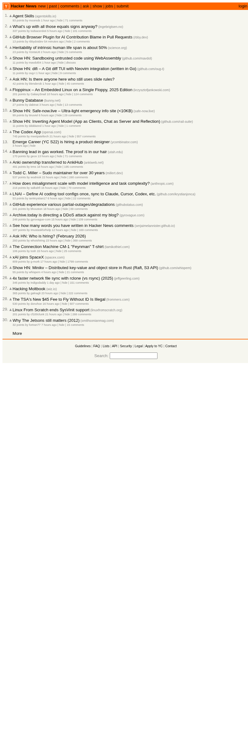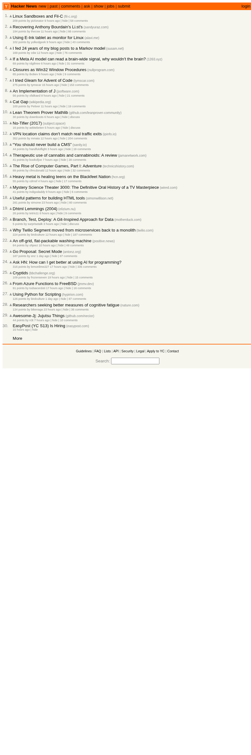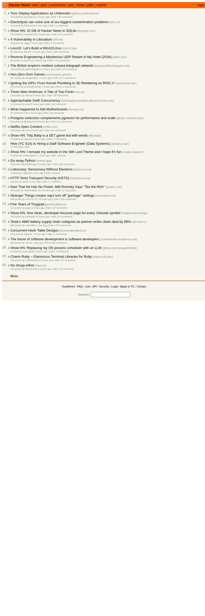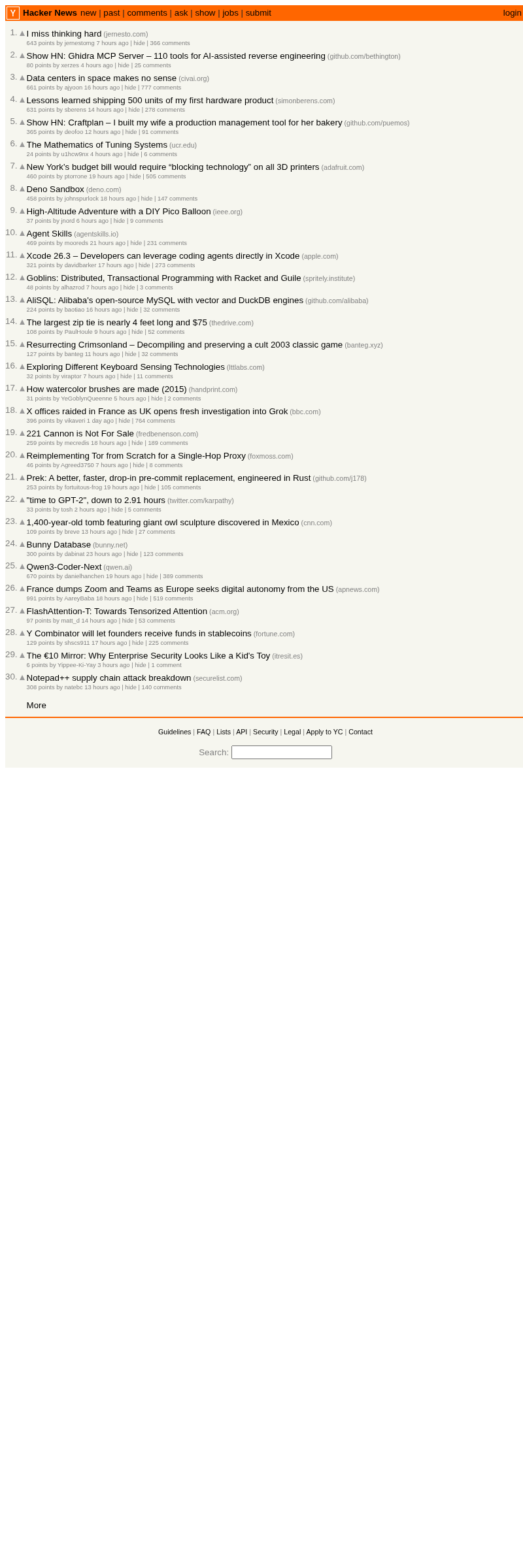 The list shows 30 Hacker News posts. I scanned the titles and domains for the term 'brightwheel' and found no matches; none of the posts mention brightwheel.