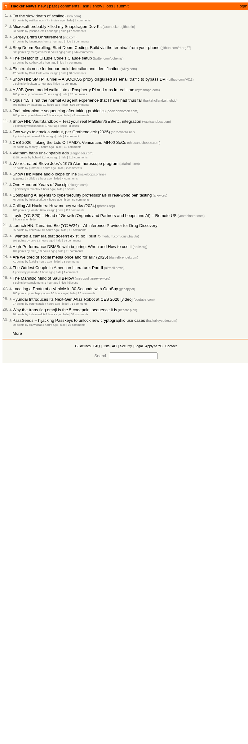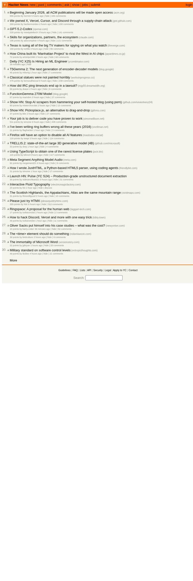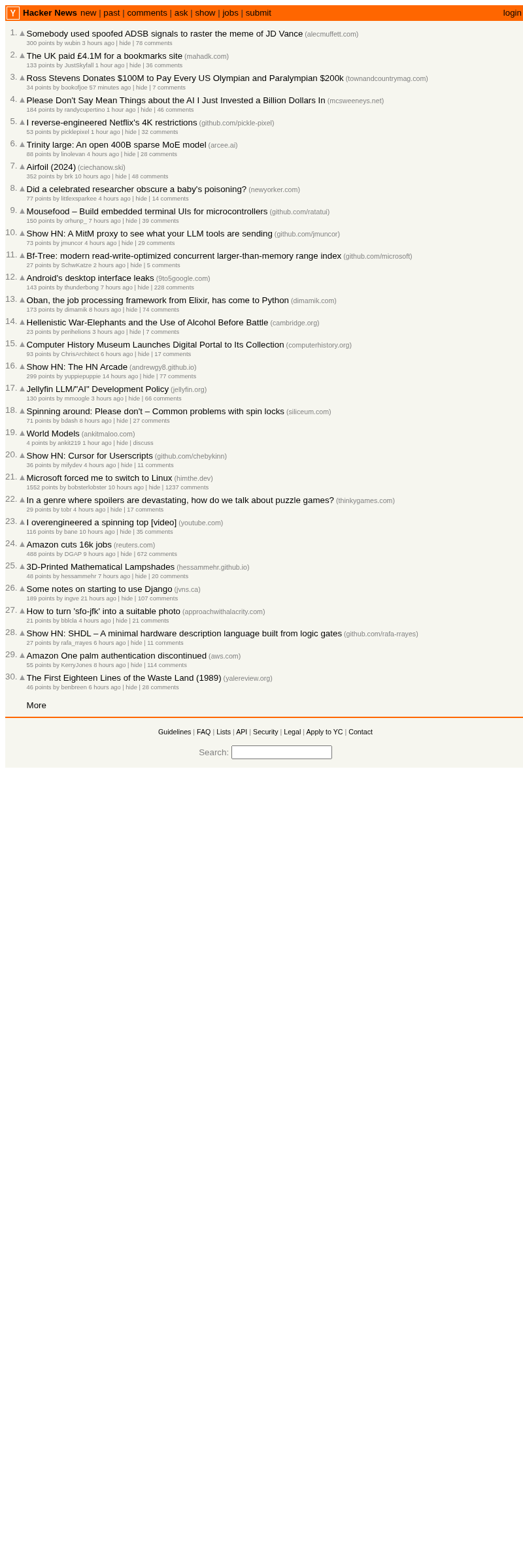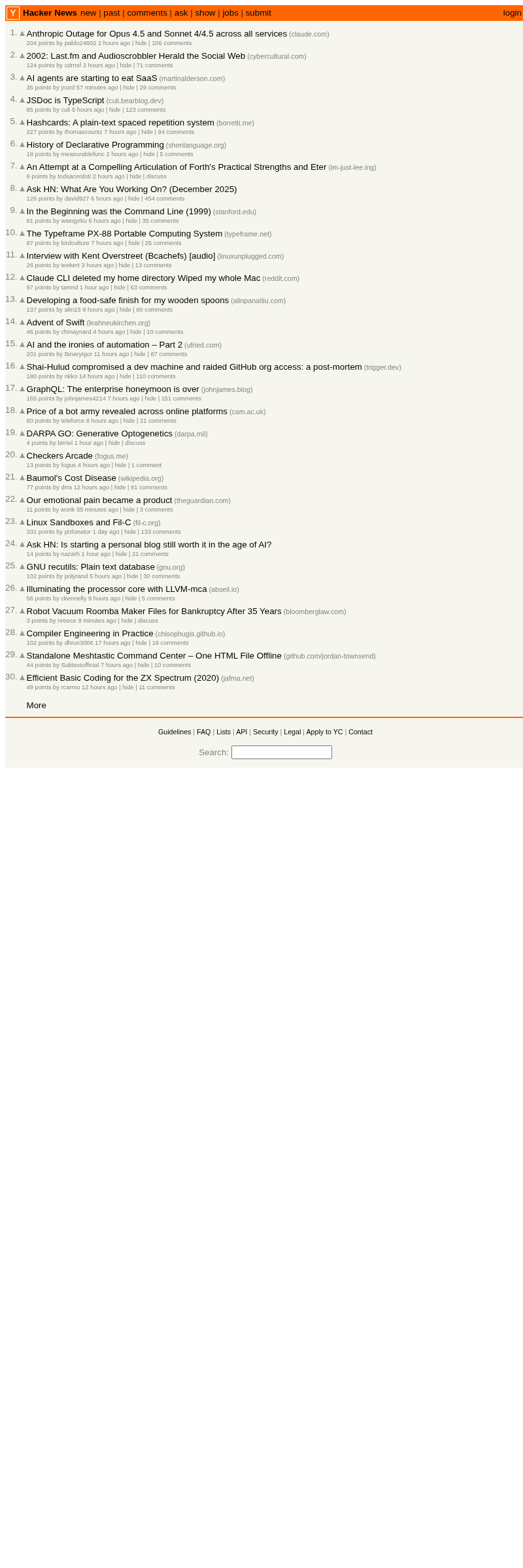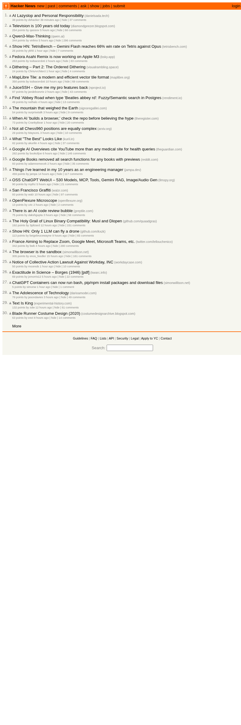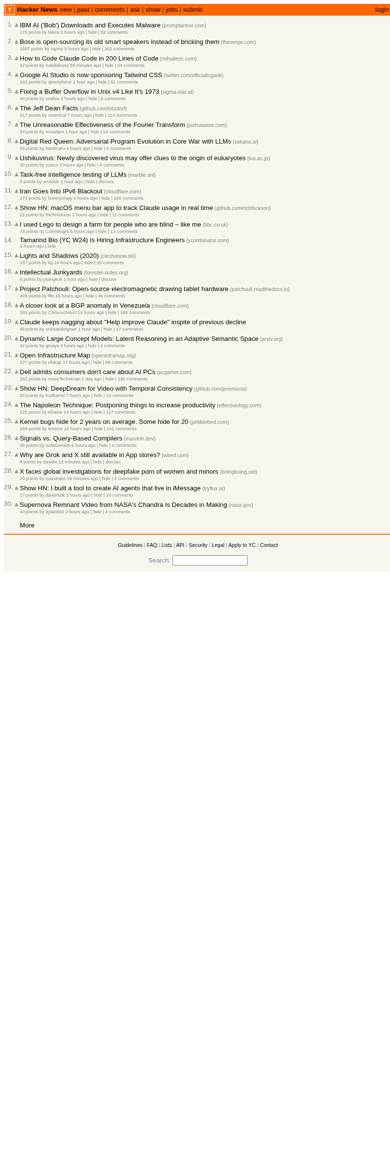 The list shows 30 Hacker News posts. I scanned the titles and domains for the term 'brightwheel' and found no matches; none of the posts mention brightwheel.