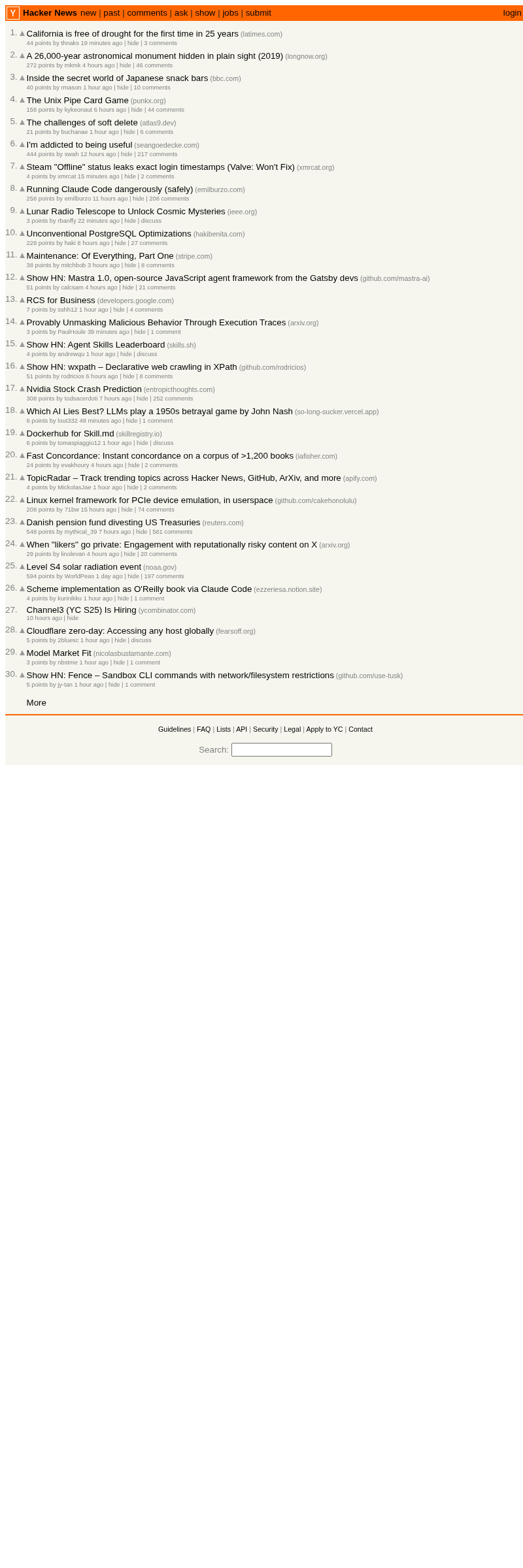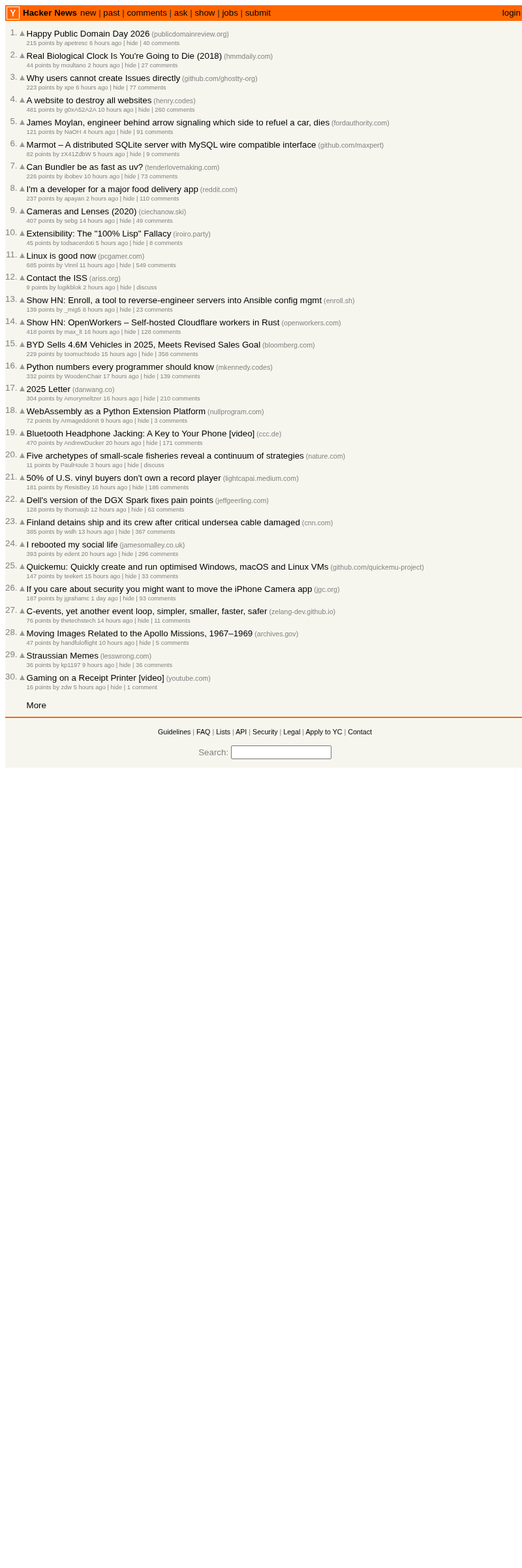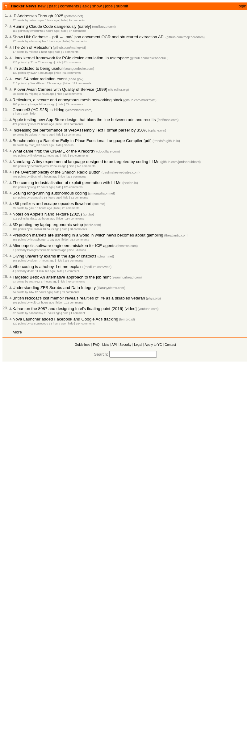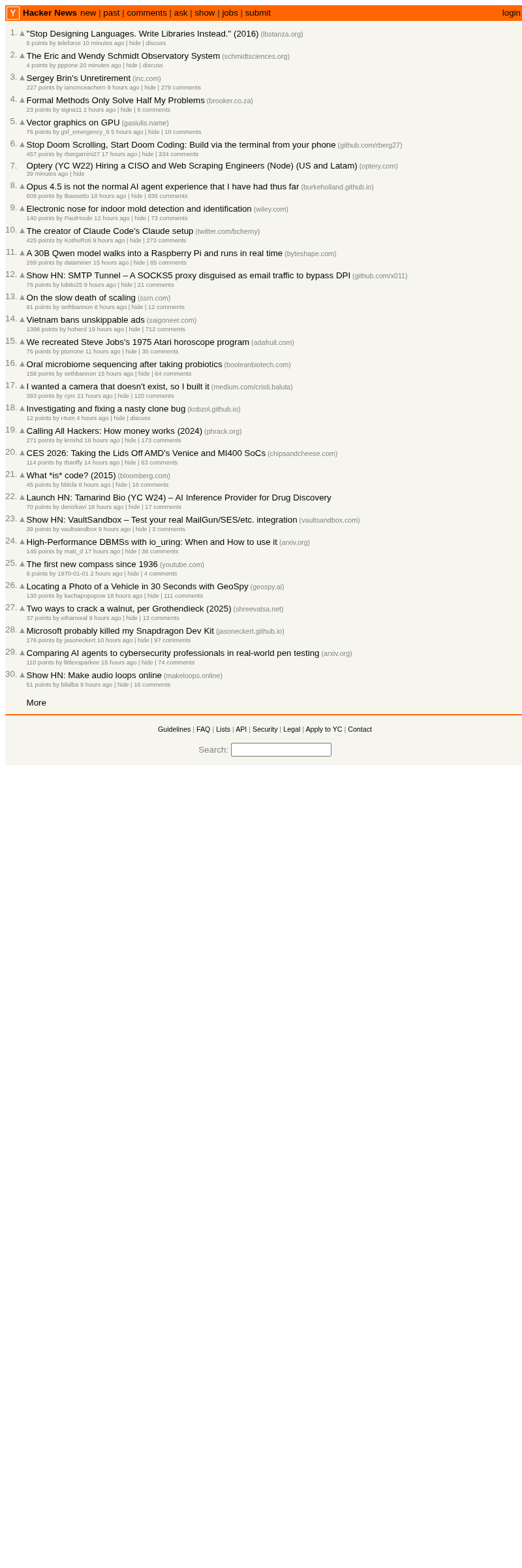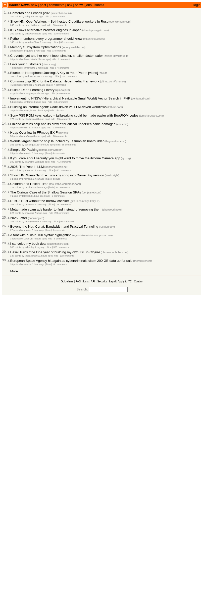 The list shows 30 Hacker News posts. I scanned the titles and domains for the term 'brightwheel' and found no matches; none of the posts mention brightwheel.