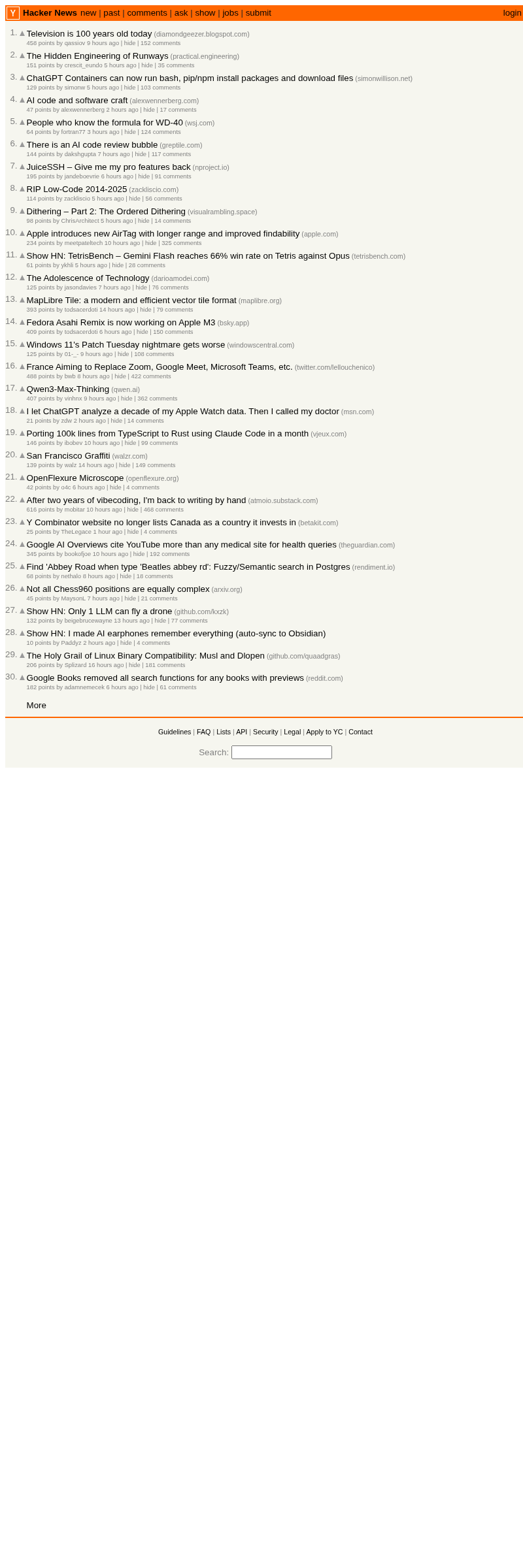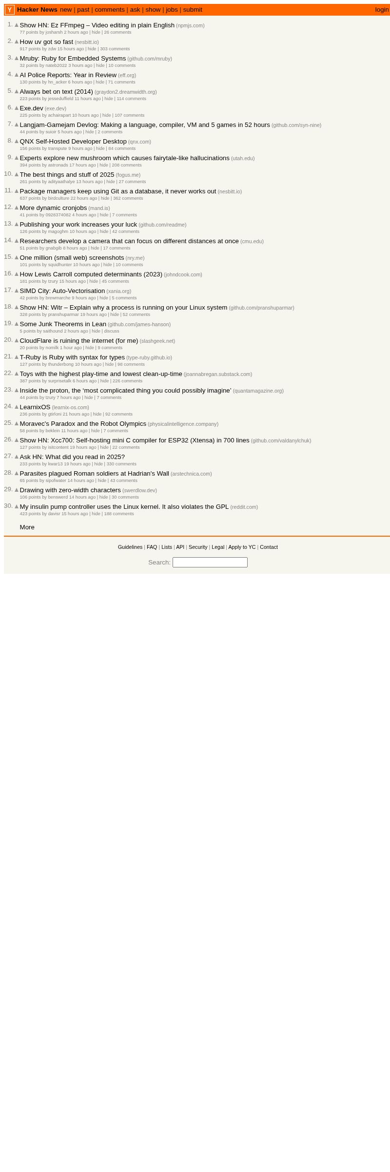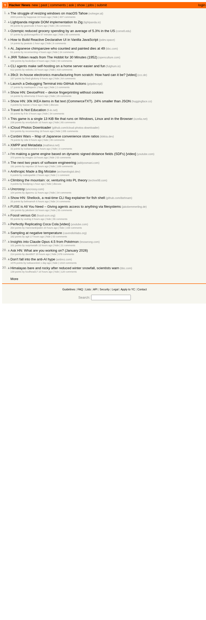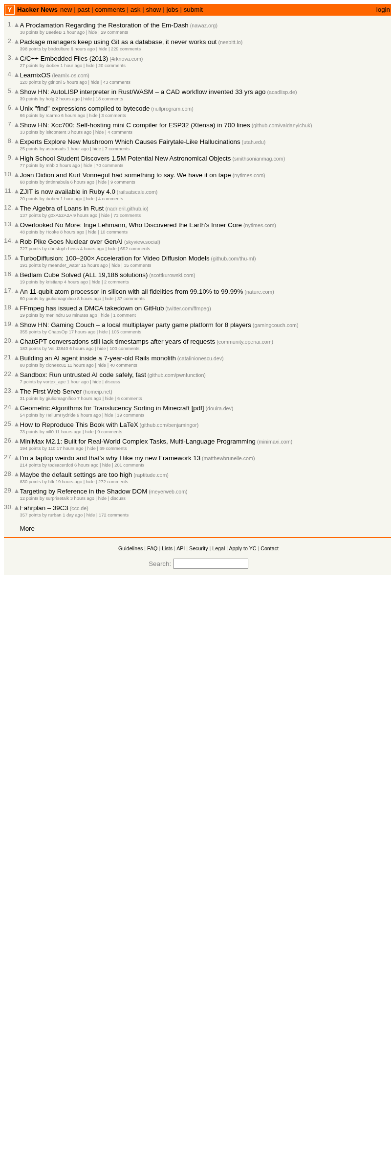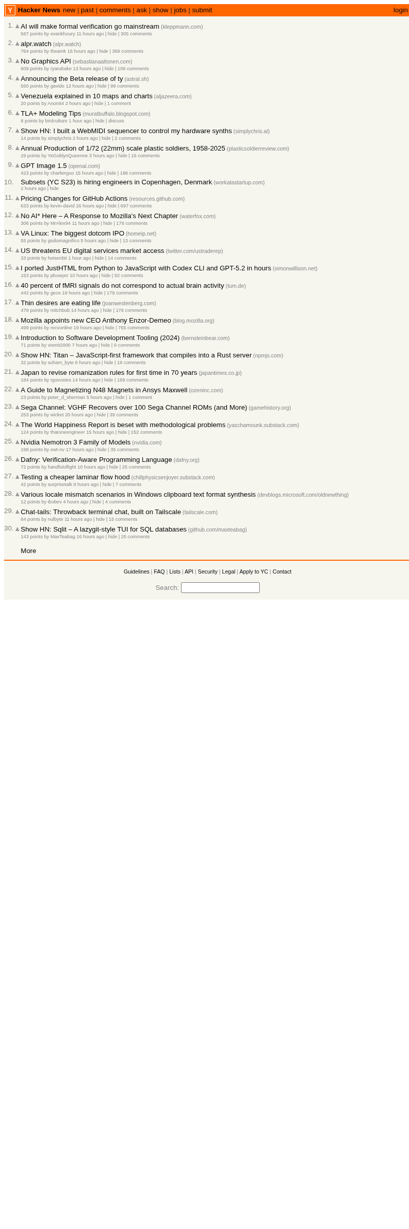 The list shows 30 Hacker News posts. I scanned the titles and domains for the term 'brightwheel' and found no matches; none of the posts mention brightwheel.