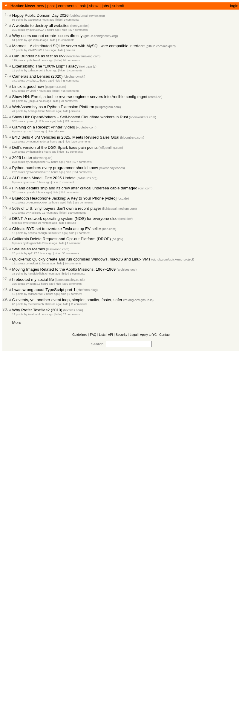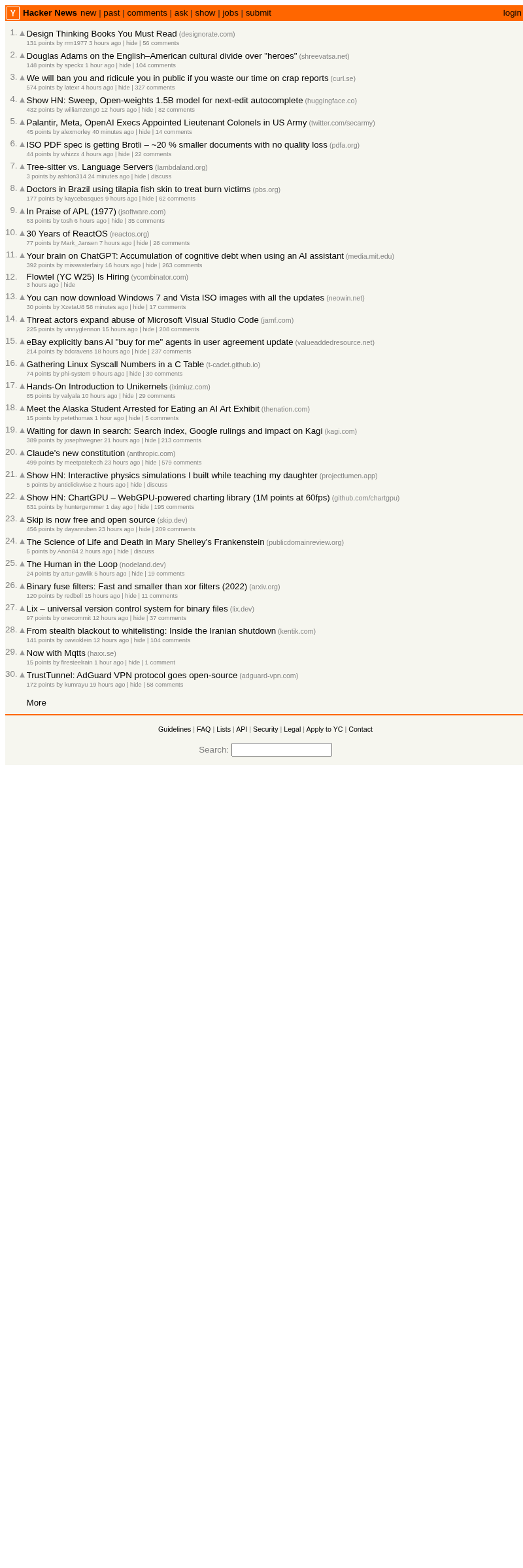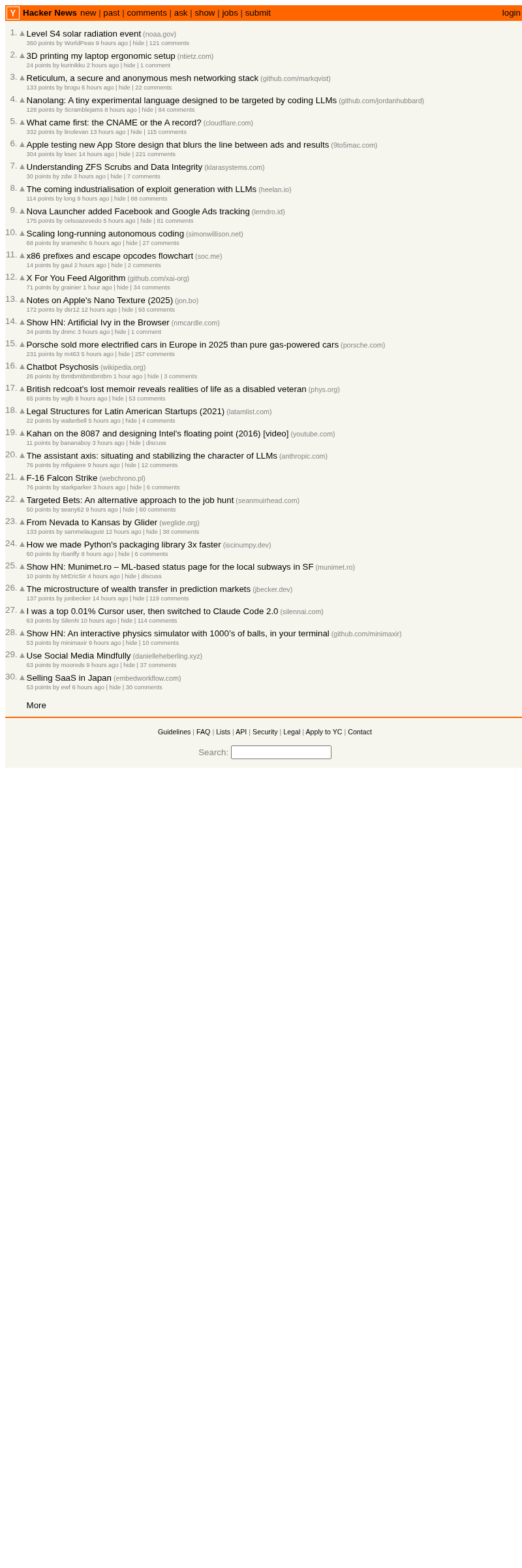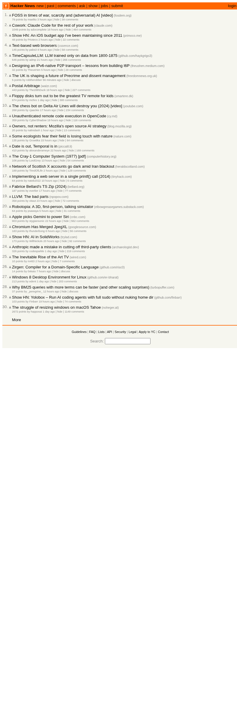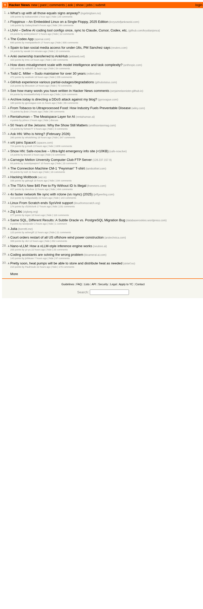 The list shows 30 Hacker News posts. I scanned the titles and domains for the term 'brightwheel' and found no matches; none of the posts mention brightwheel.