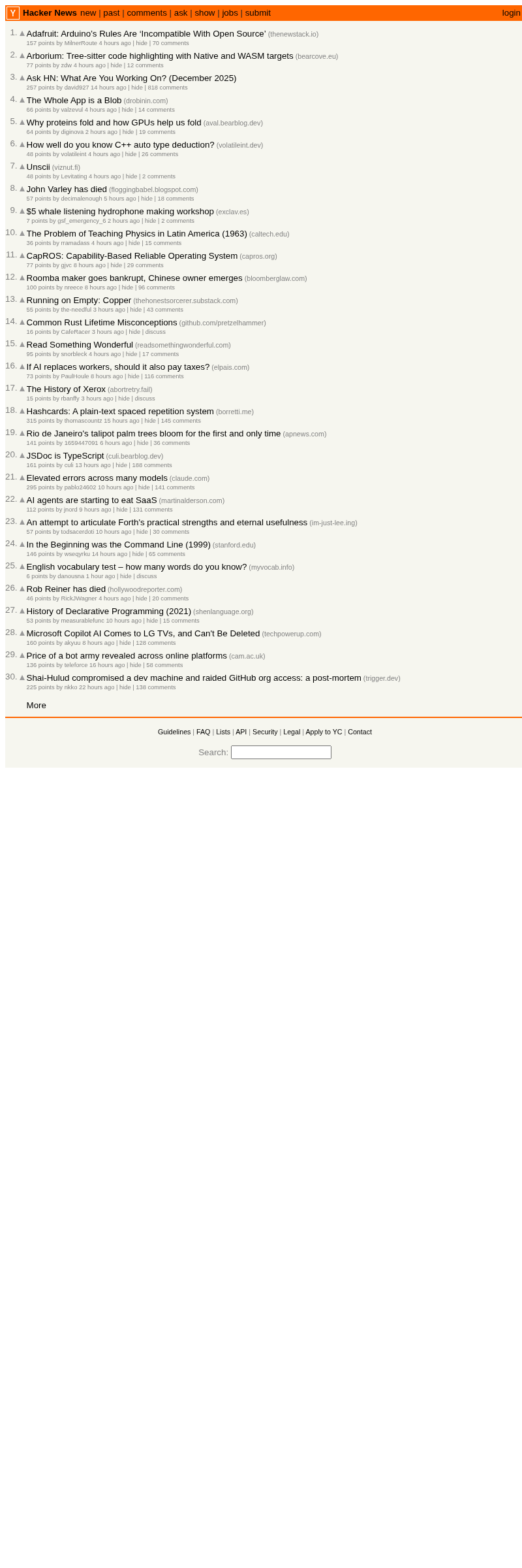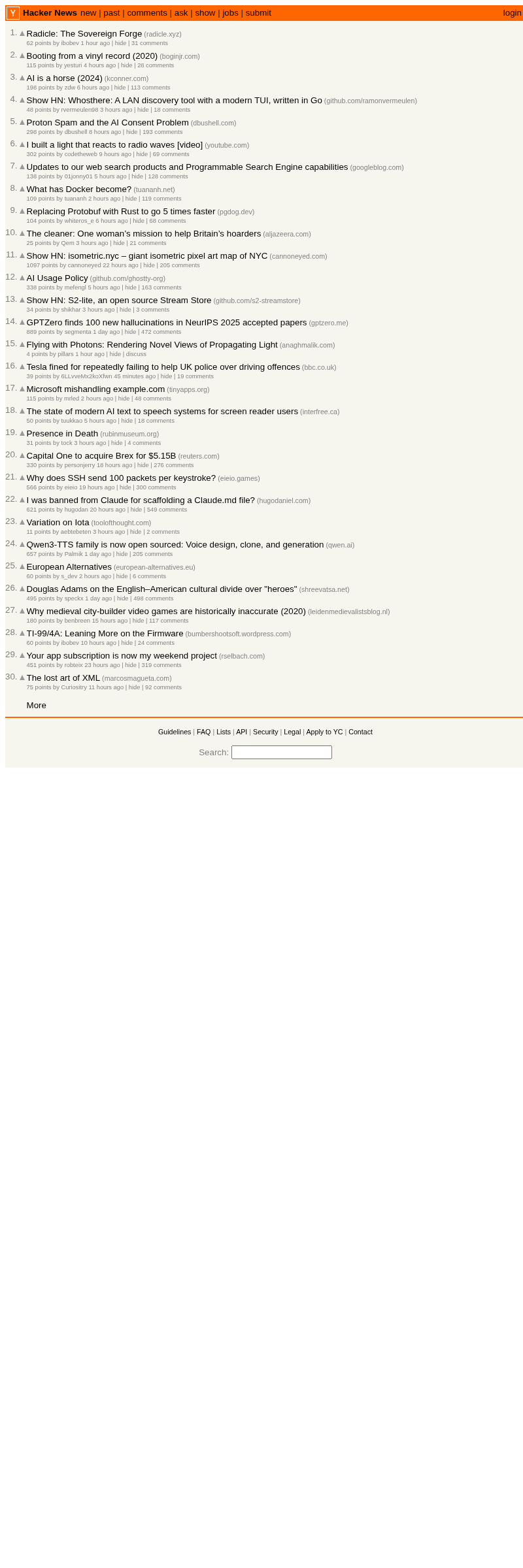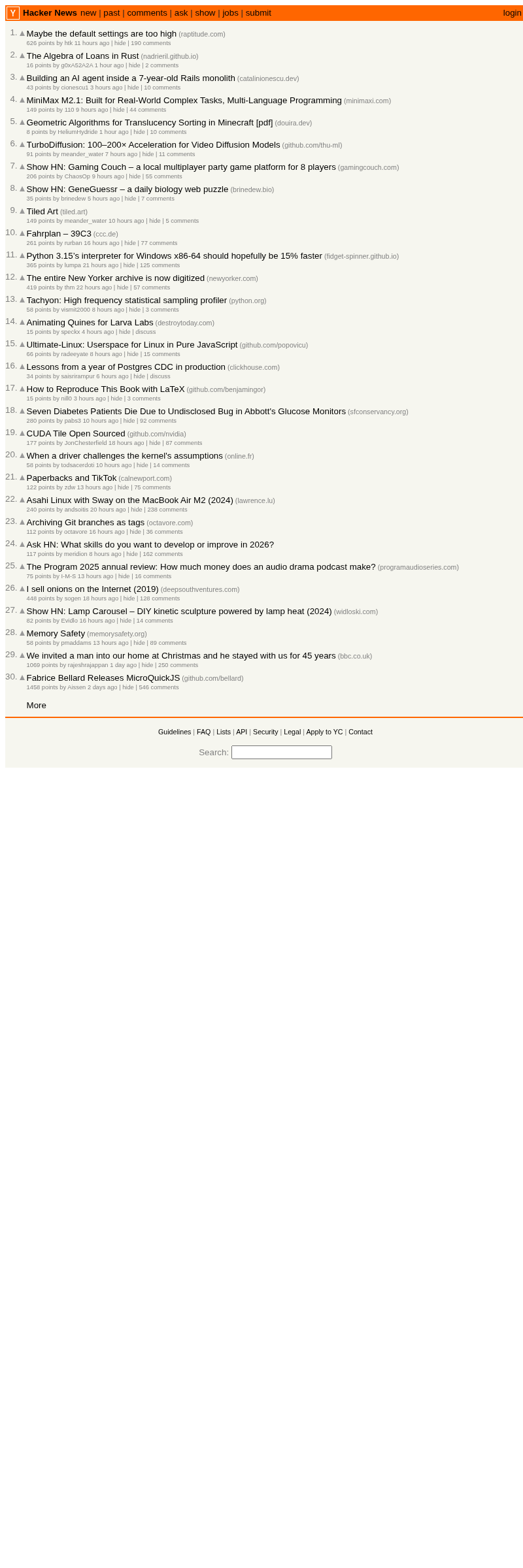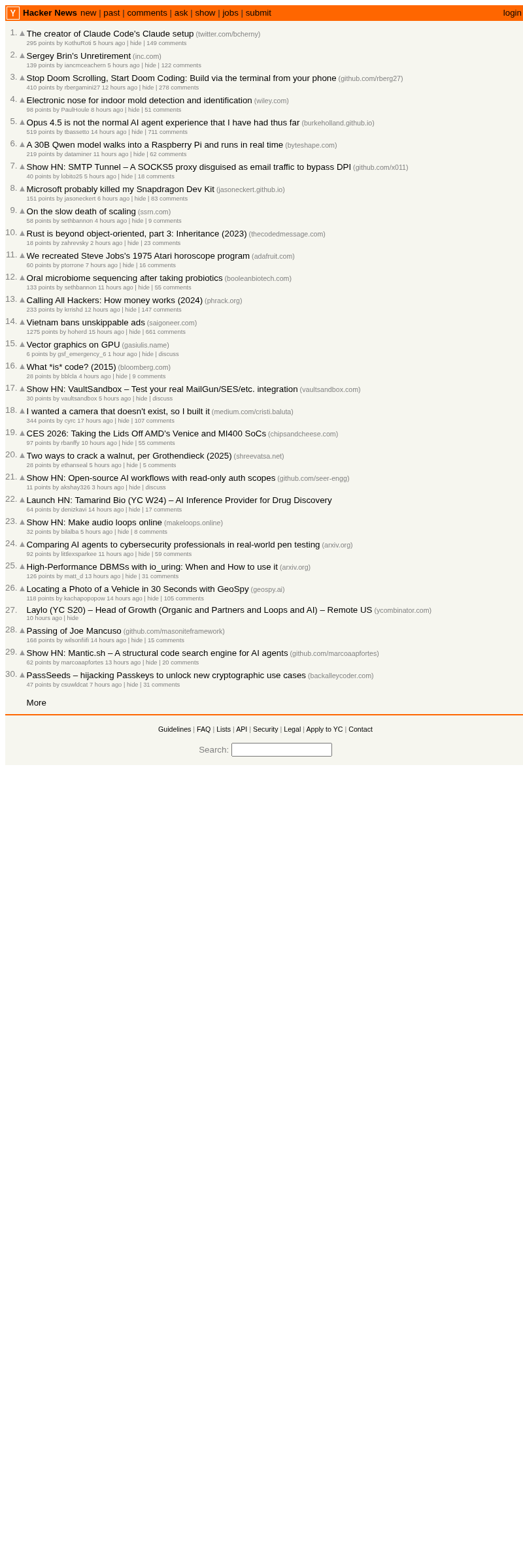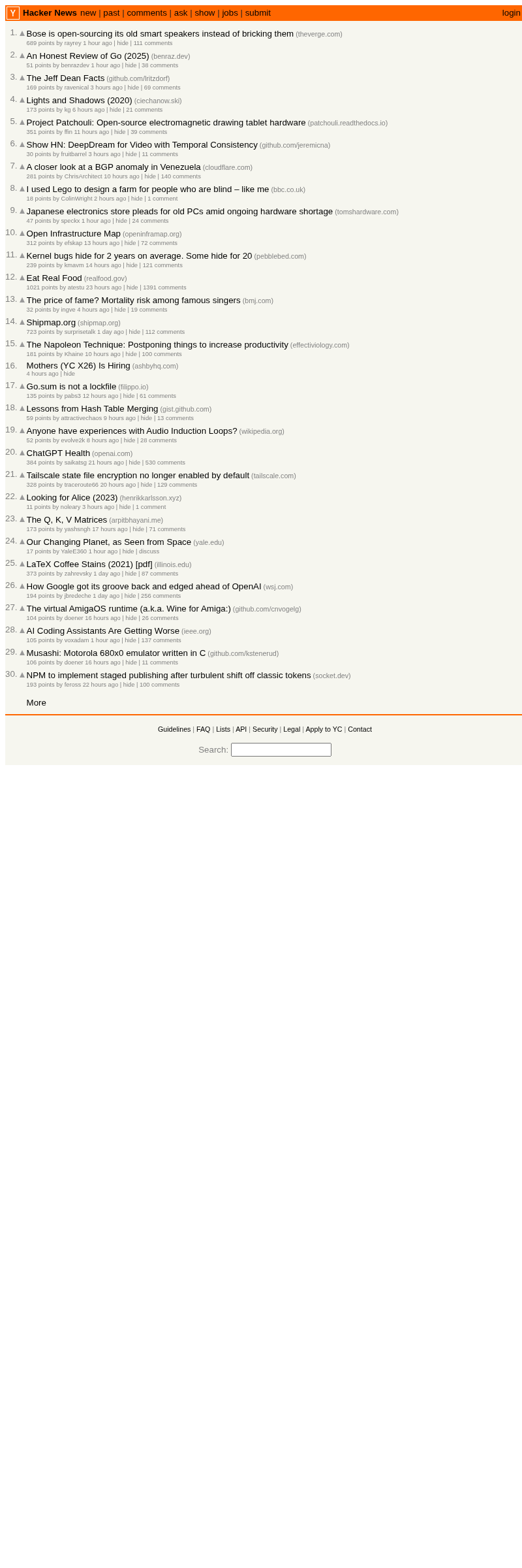 The list shows 30 Hacker News posts. I scanned the titles and domains for the term 'brightwheel' and found no matches; none of the posts mention brightwheel.