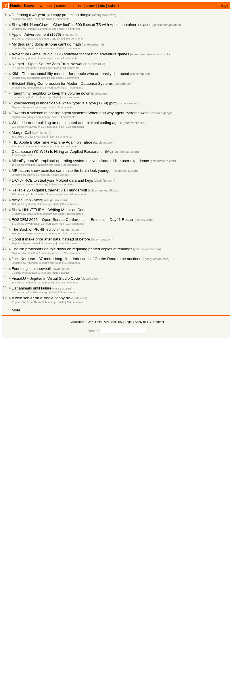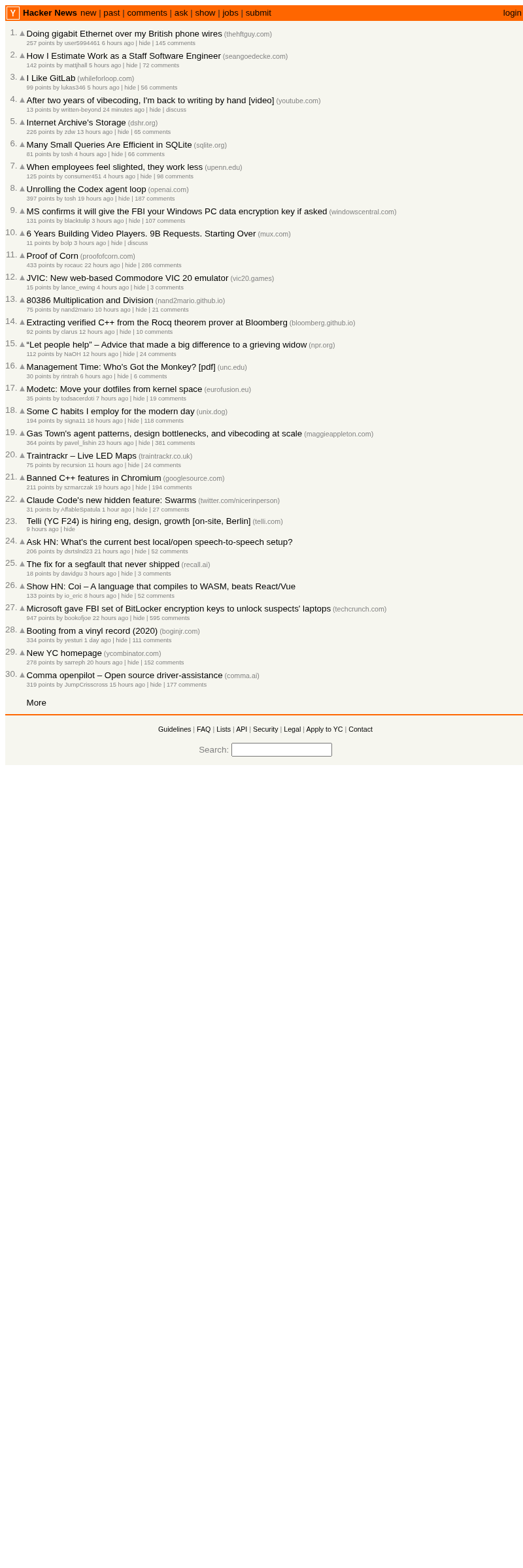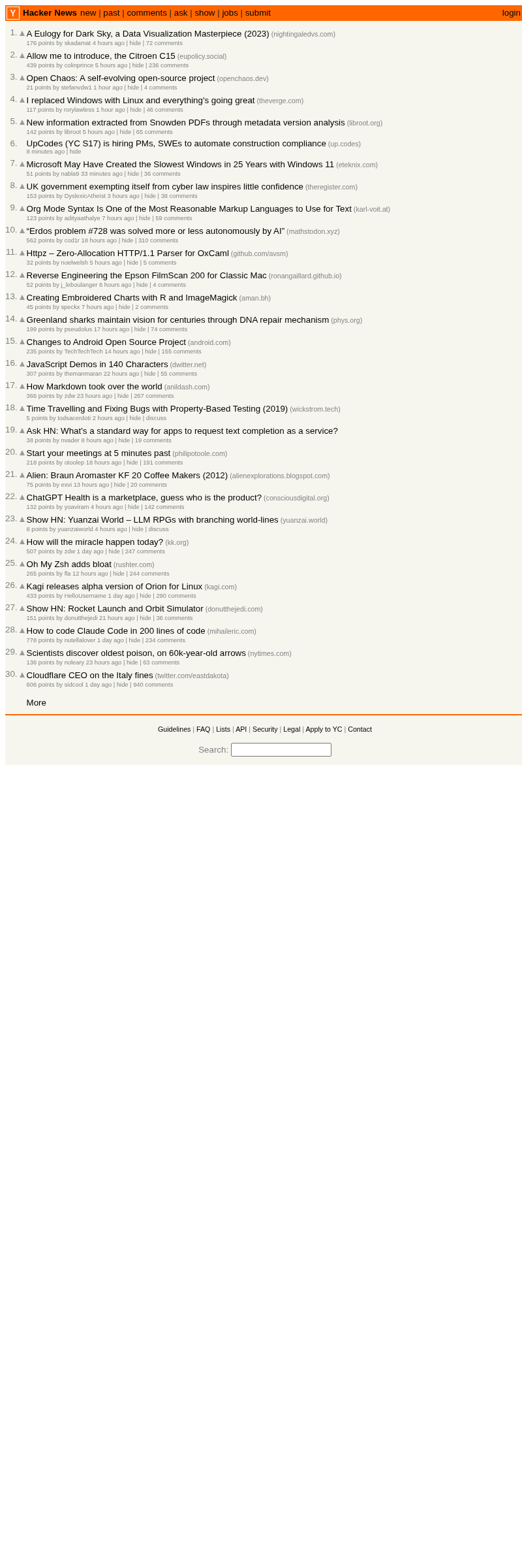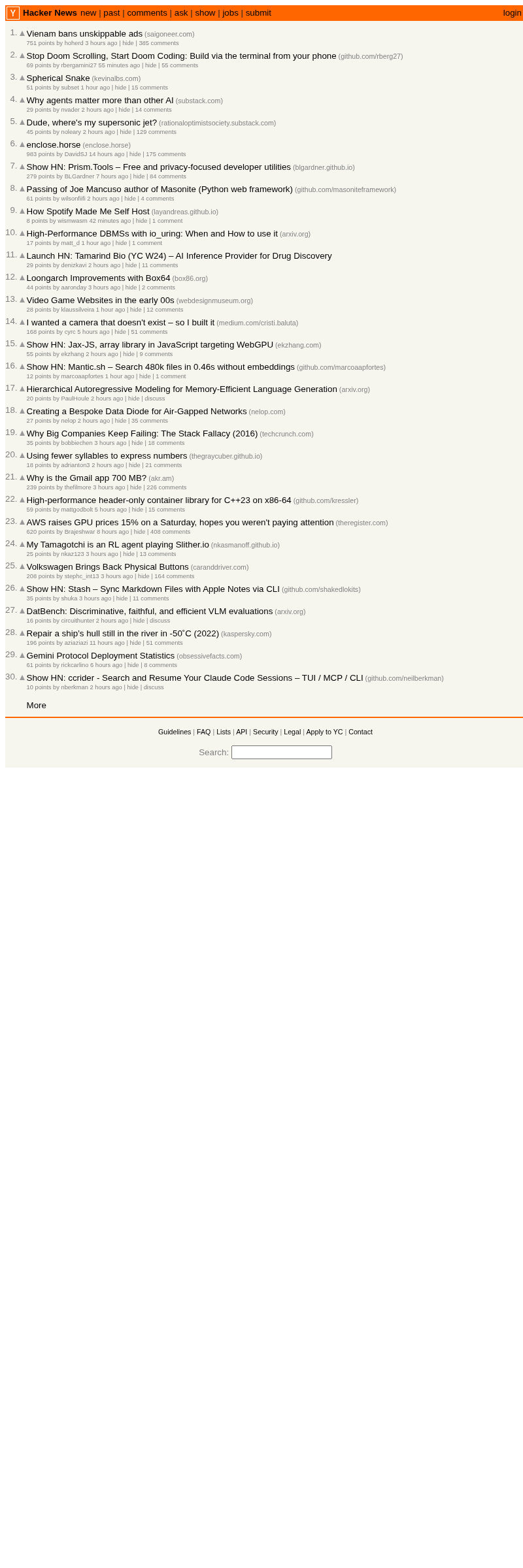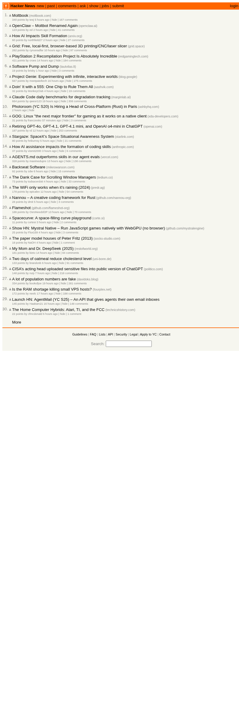 The list shows 30 Hacker News posts. I scanned the titles and domains for the term 'brightwheel' and found no matches; none of the posts mention brightwheel.