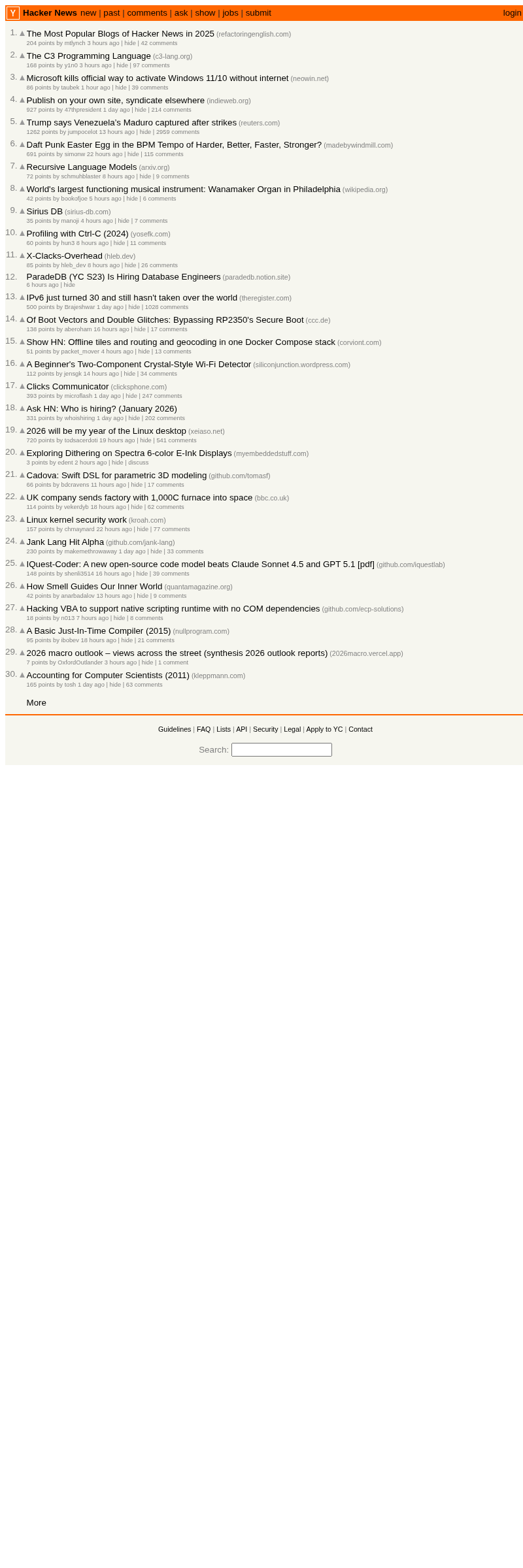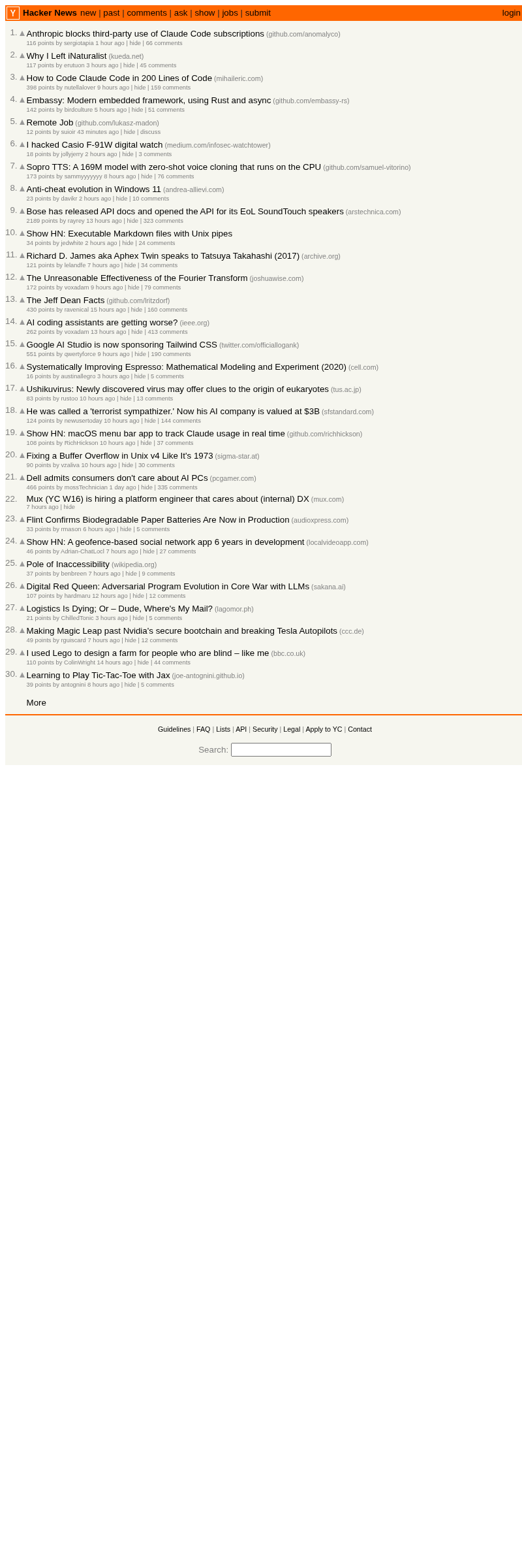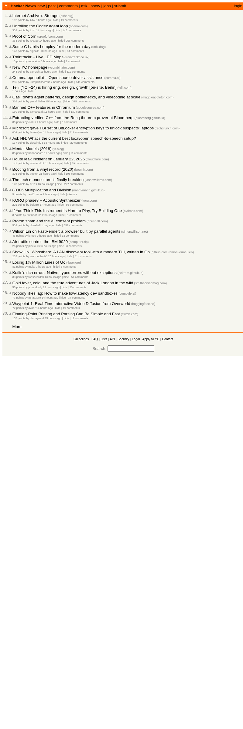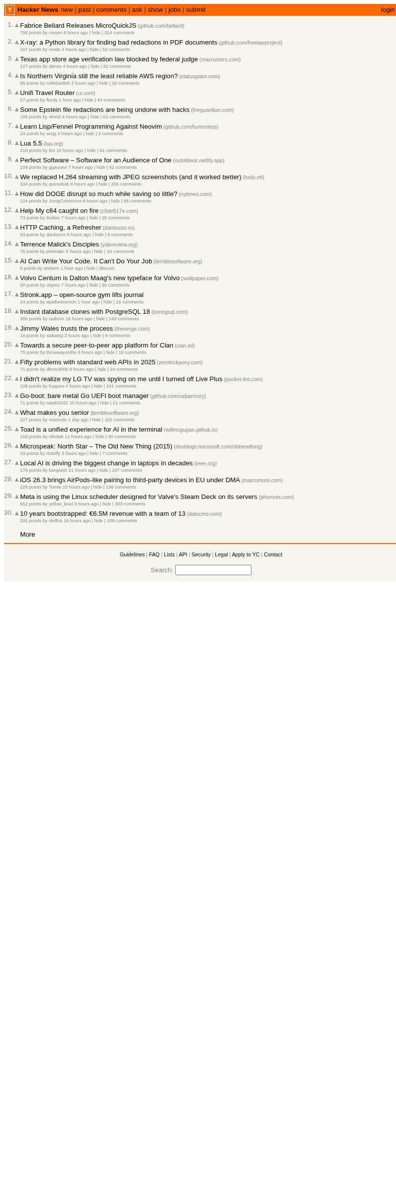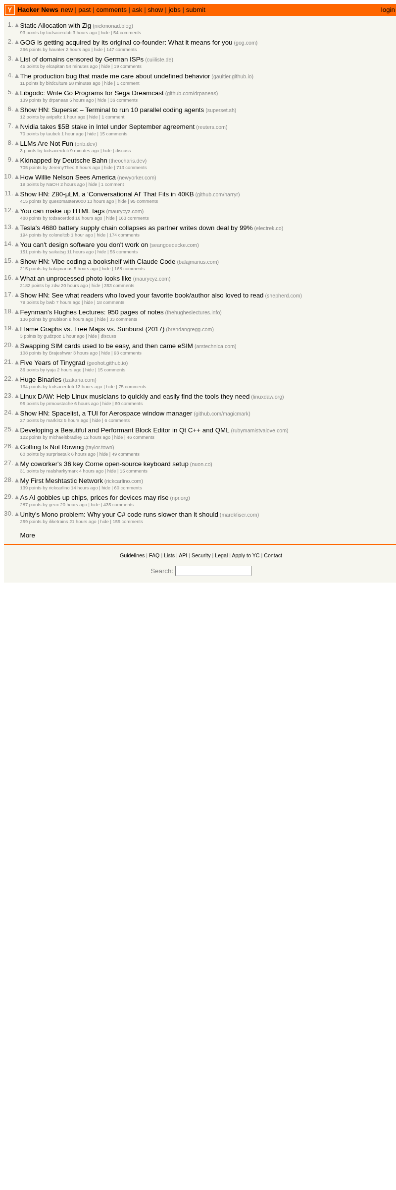 The list shows 30 Hacker News posts. I scanned the titles and domains for the term 'brightwheel' and found no matches; none of the posts mention brightwheel.