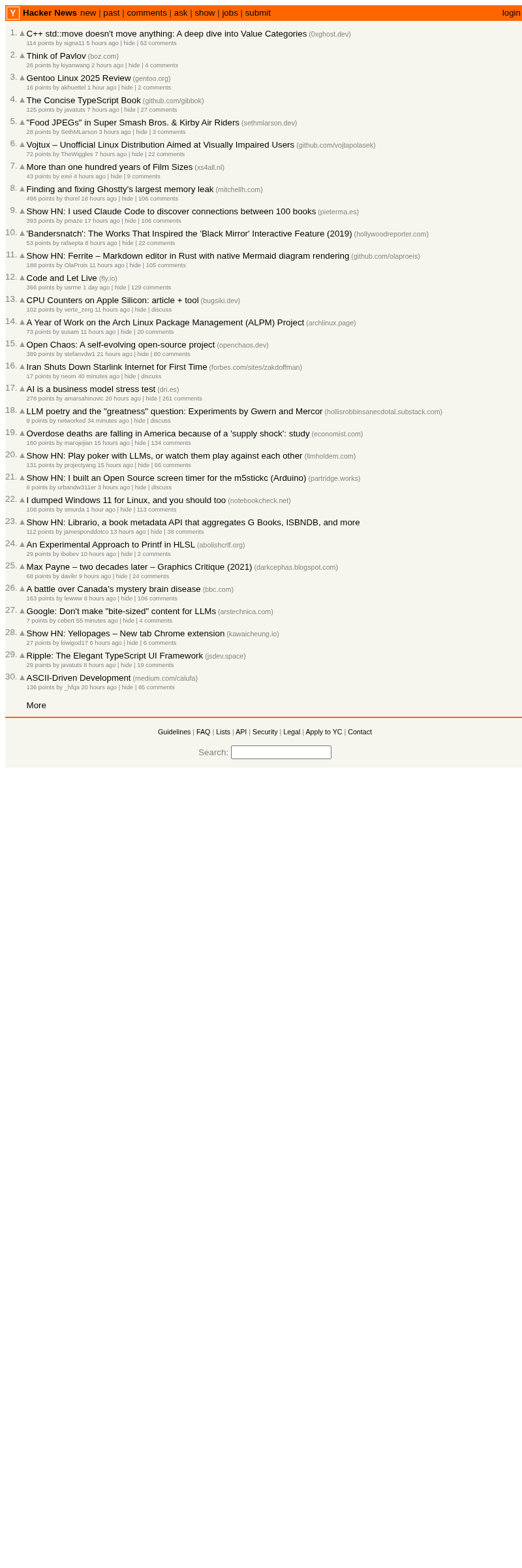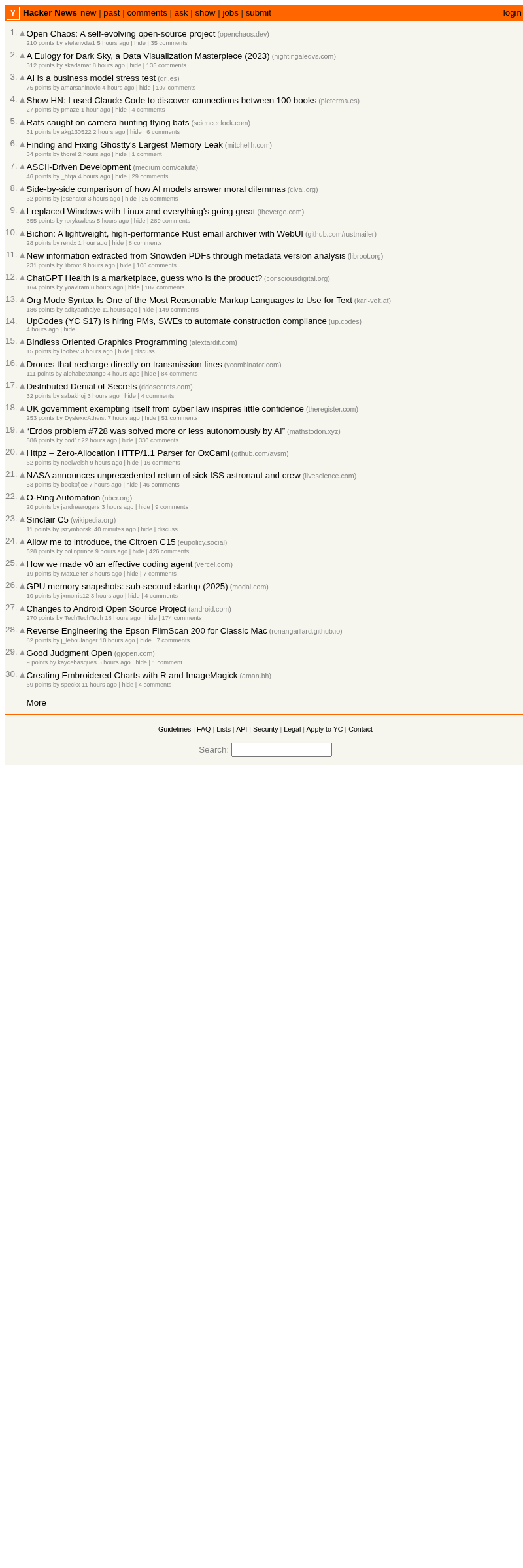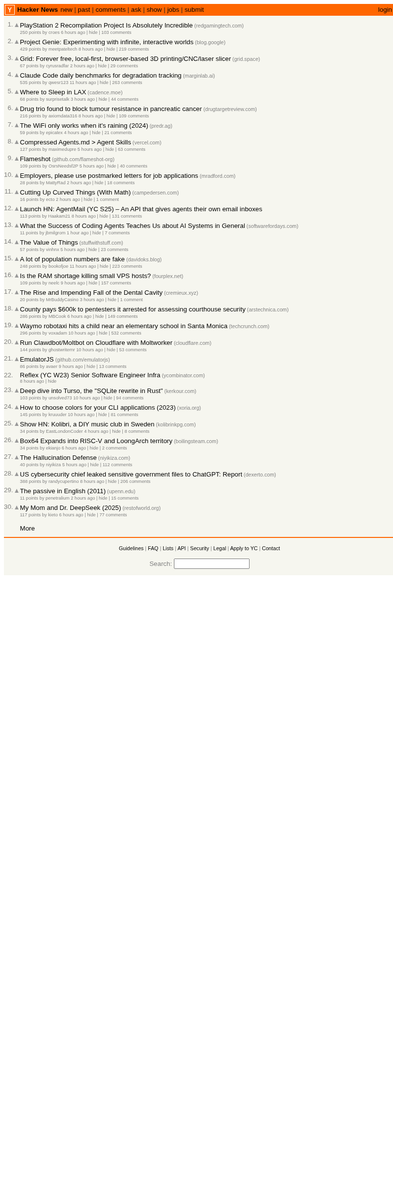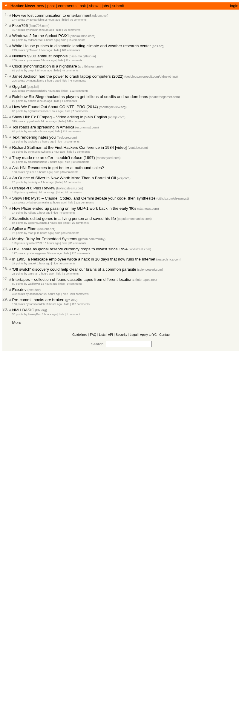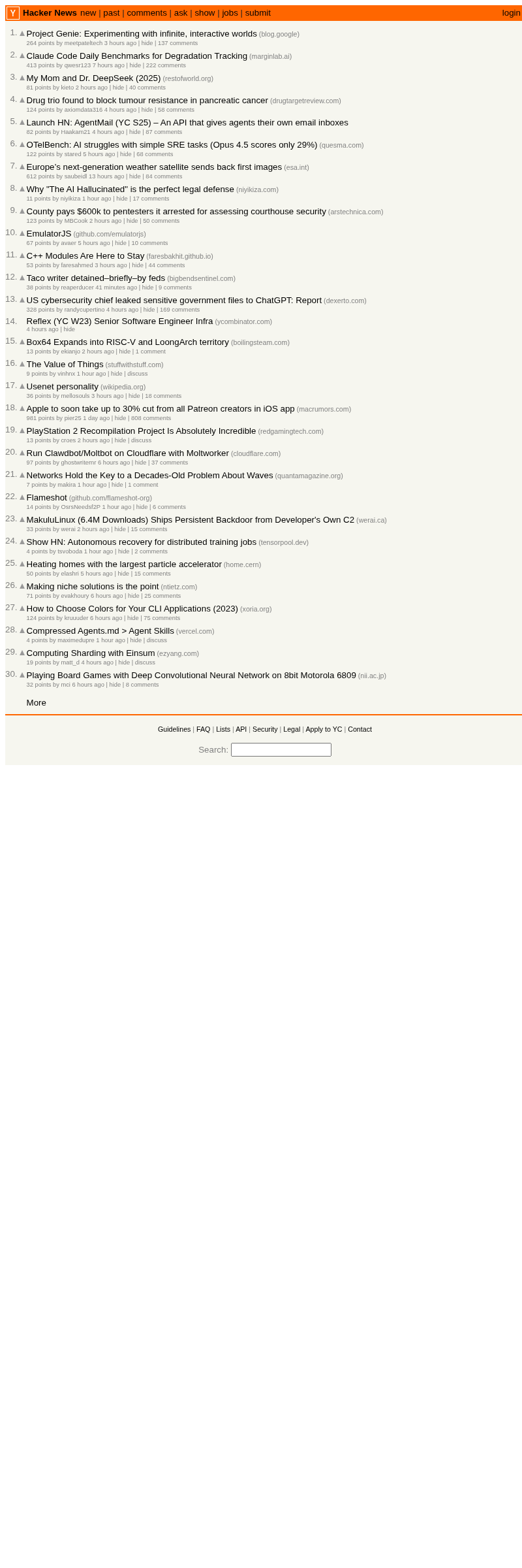 The list shows 30 Hacker News posts. I scanned the titles and domains for the term 'brightwheel' and found no matches; none of the posts mention brightwheel.