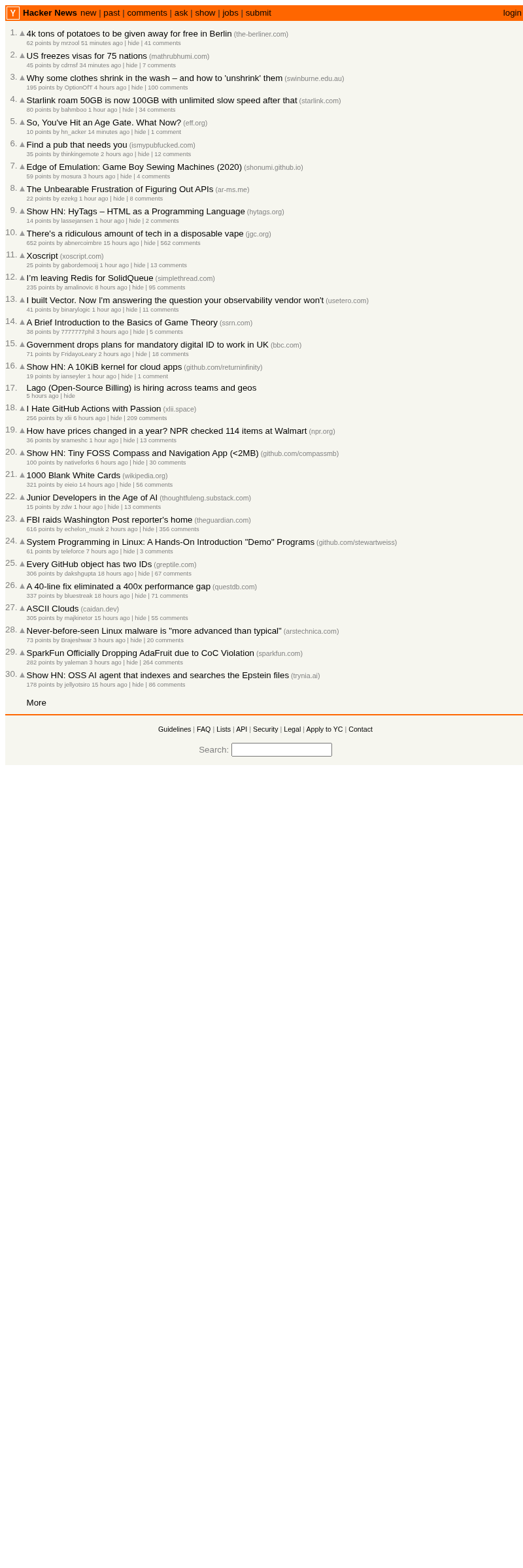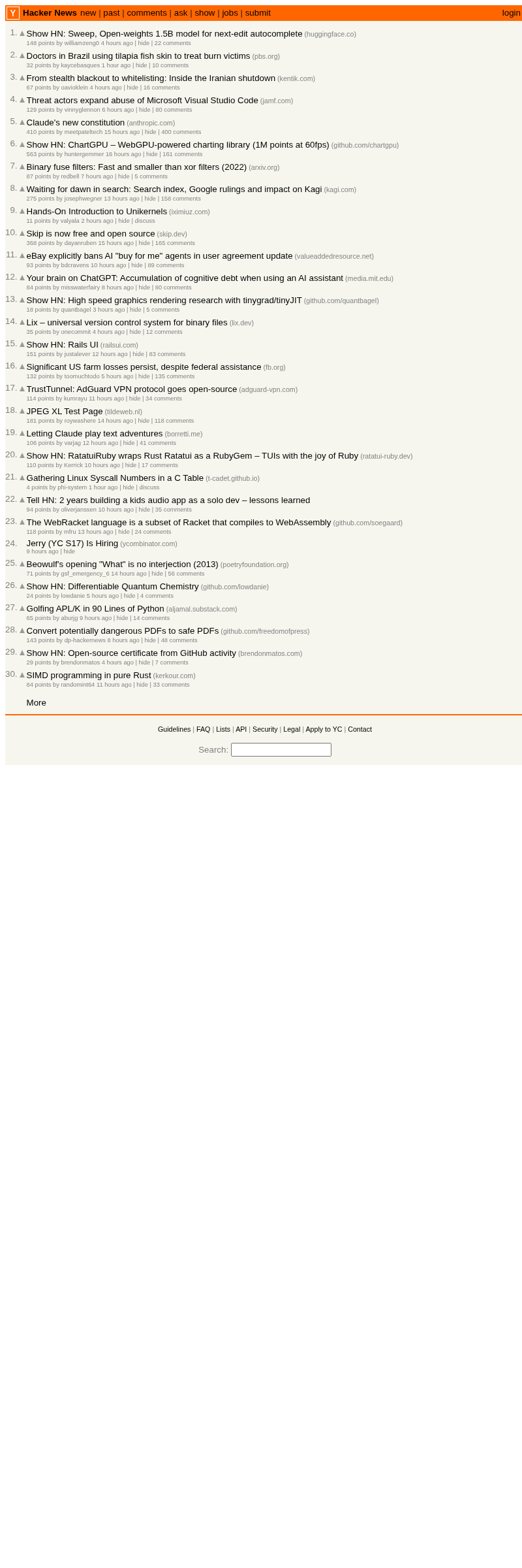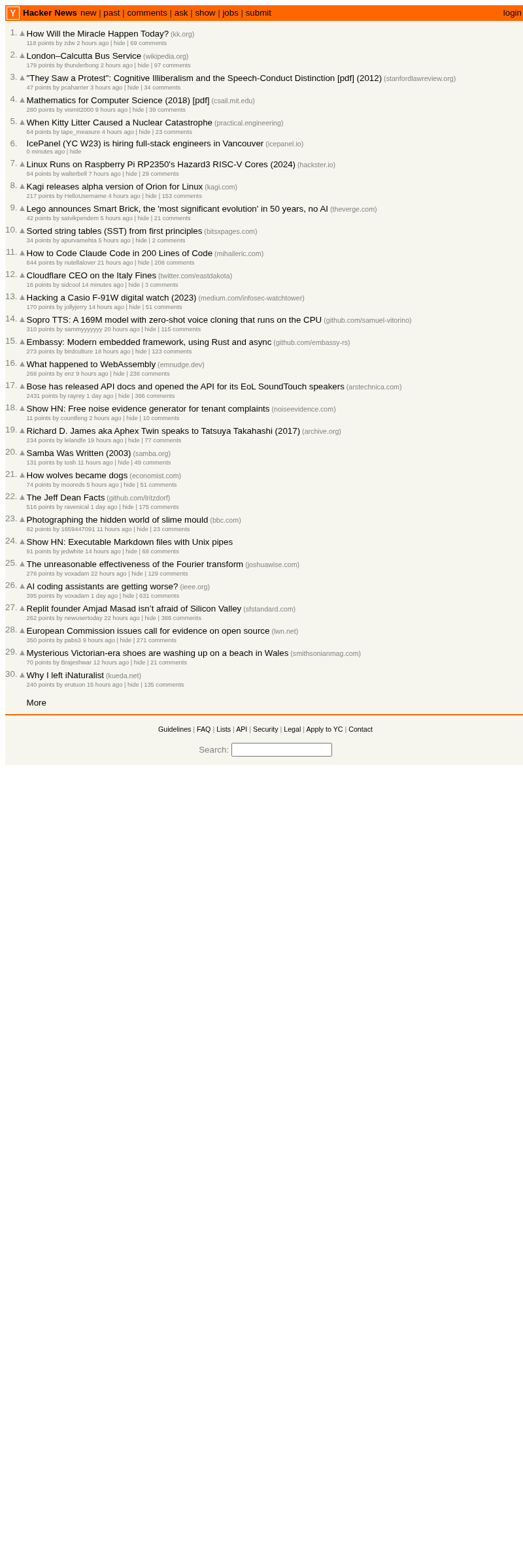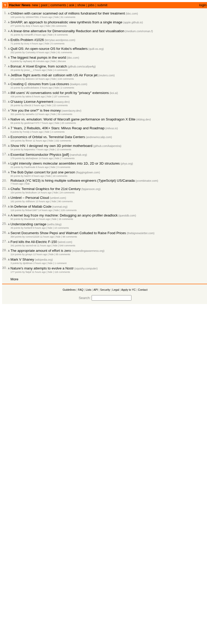The list of Hacker News posts shown (1-30) does not include any title mentioning 'brightwheel'. Therefore, there is no post about brightwheel on this page.