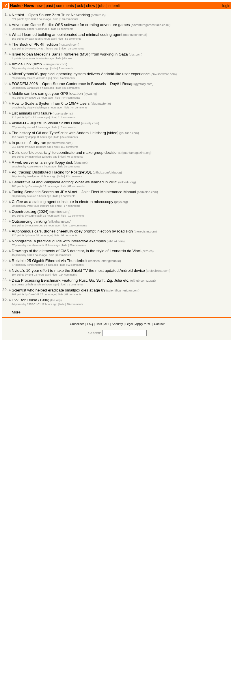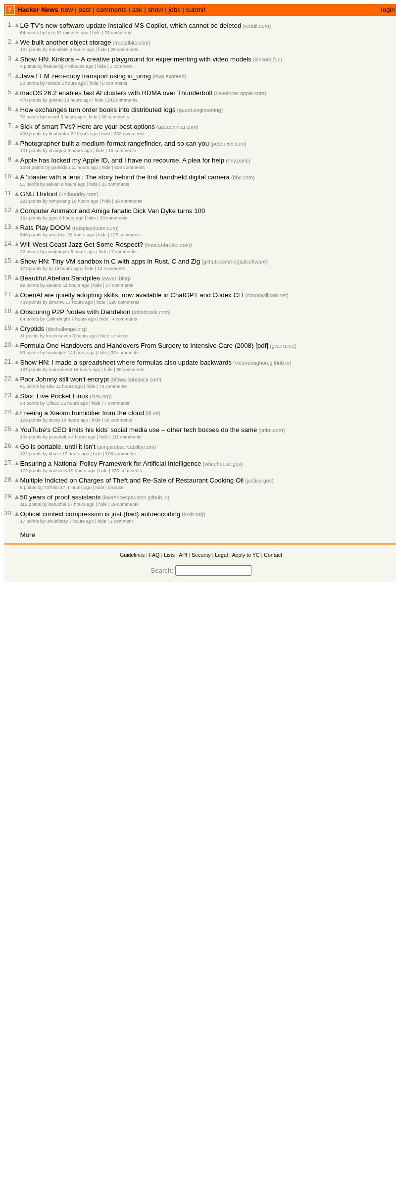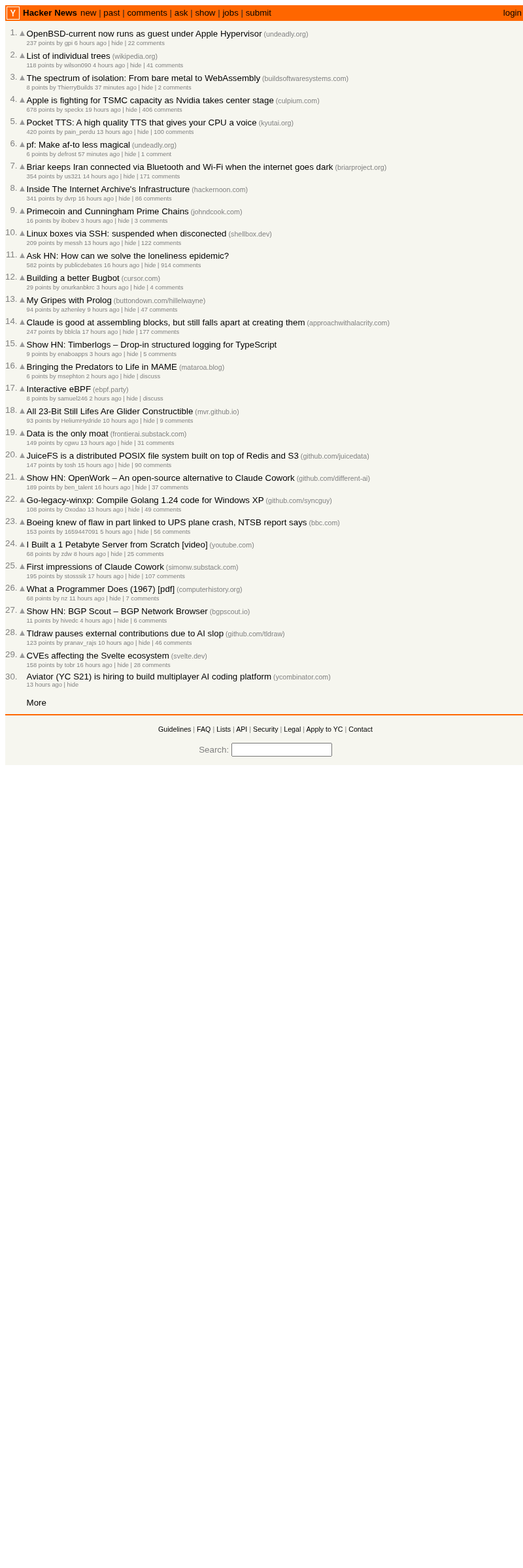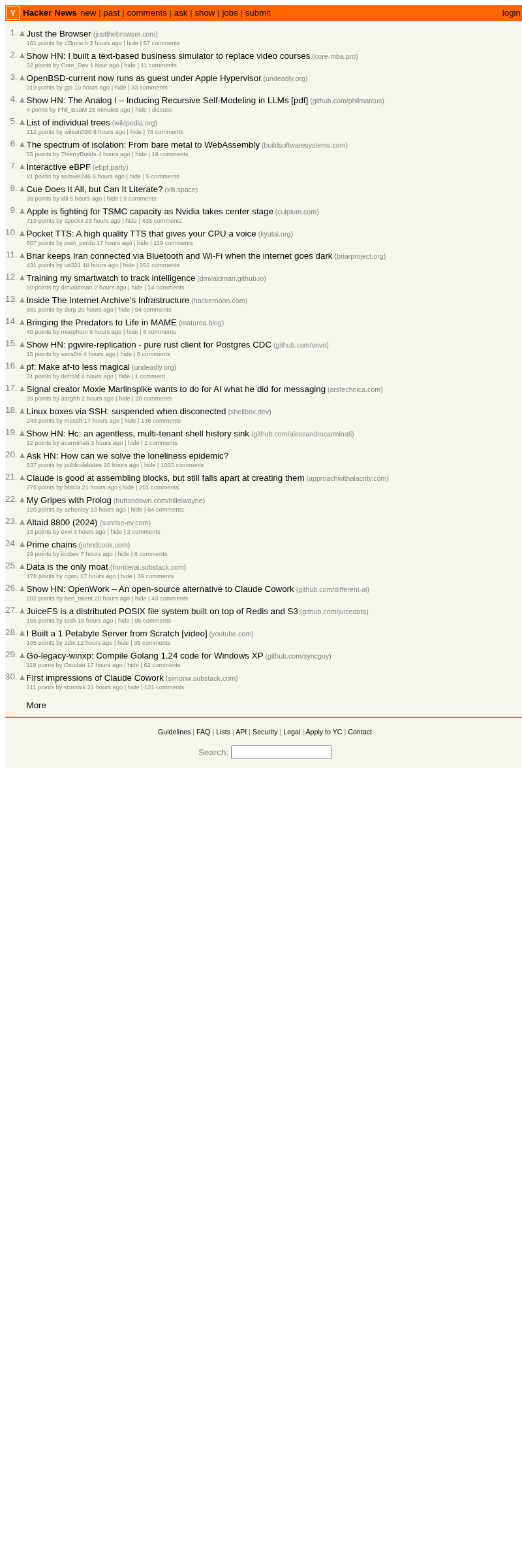 The list of Hacker News posts shown (1-30) does not include any title mentioning 'brightwheel'. Therefore, there is no post about brightwheel on this page.