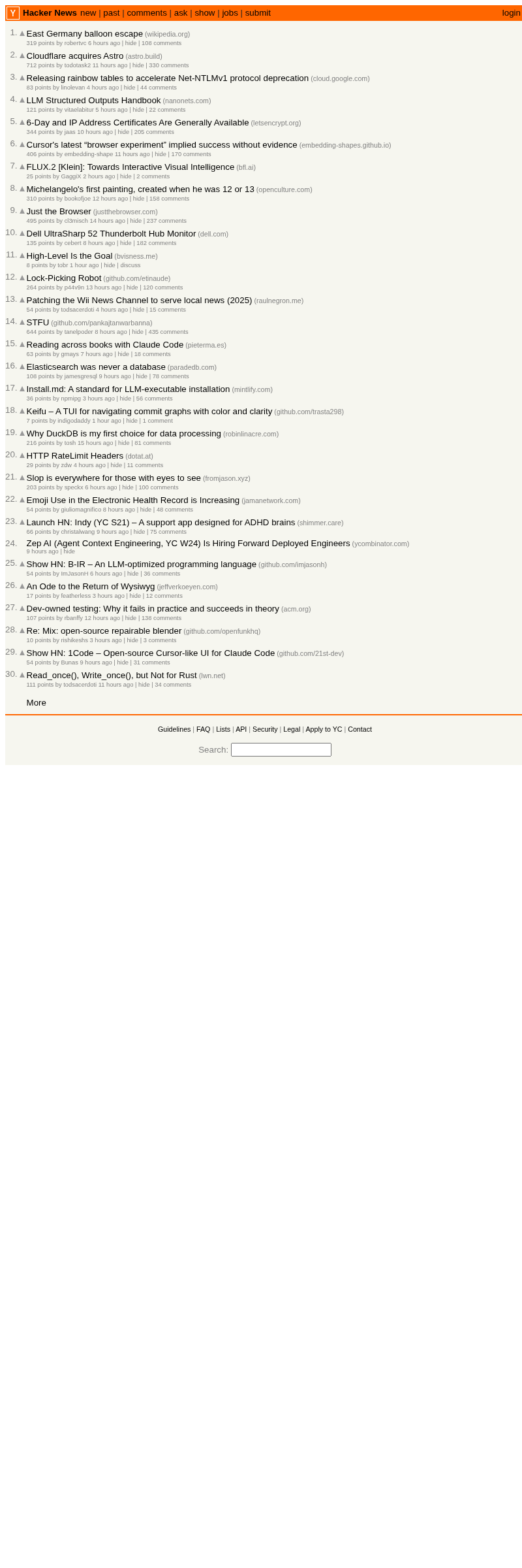 The Hacker News 'new' feed shown lists 30 item titles. None of the titles or linked domains mention 'brightwheel'. Therefore, there is no post about brightwheel in this page snapshot.