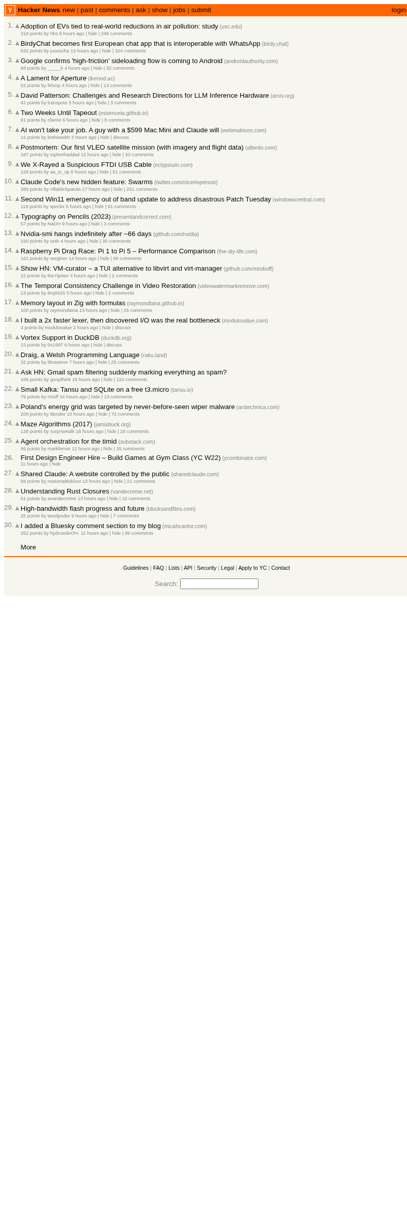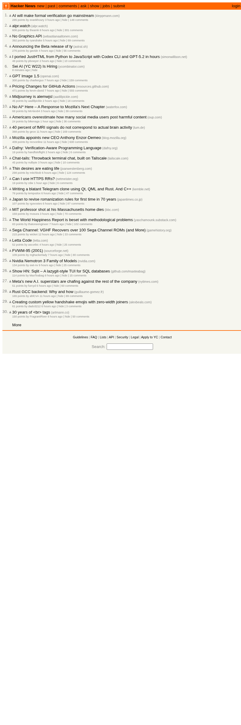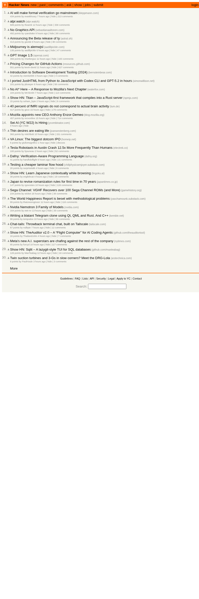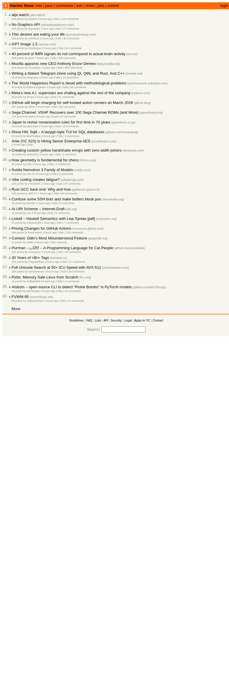 The page shows a Hacker News front page with post titles. None of the titles or linked domains mention 'brightwheel'. Therefore no post about brightwheel is present.