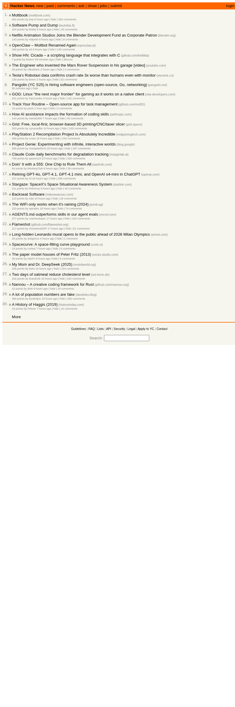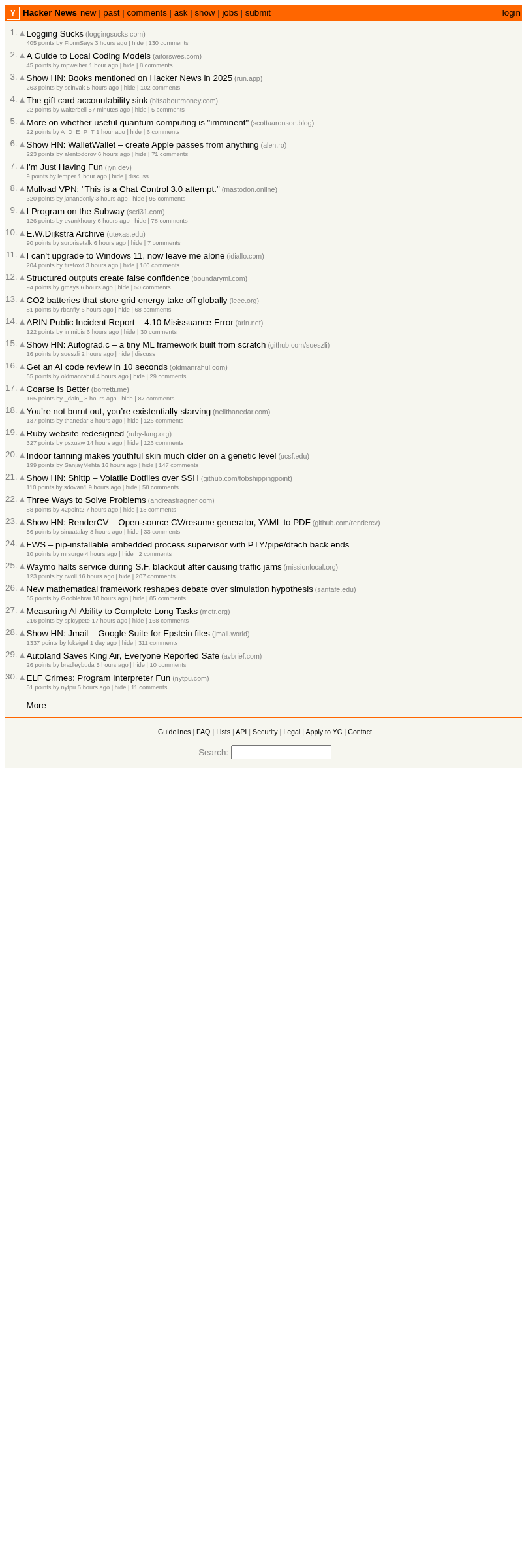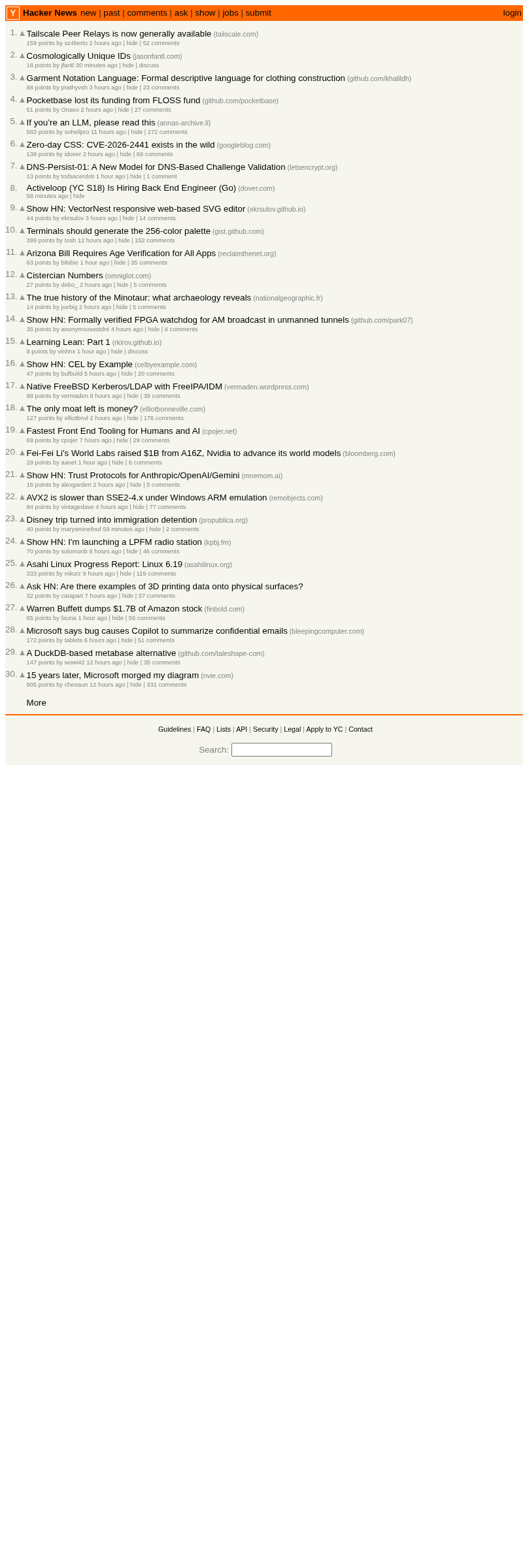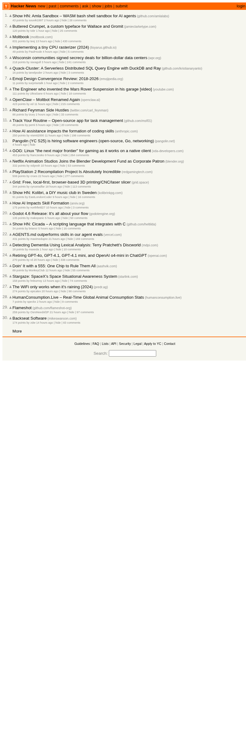 The page shows a Hacker News front page with post titles. None of the titles or linked domains mention 'brightwheel'. Therefore no post about brightwheel is present.