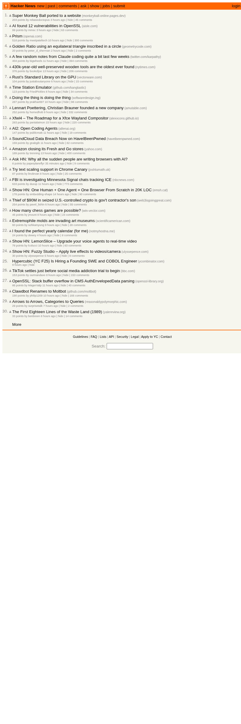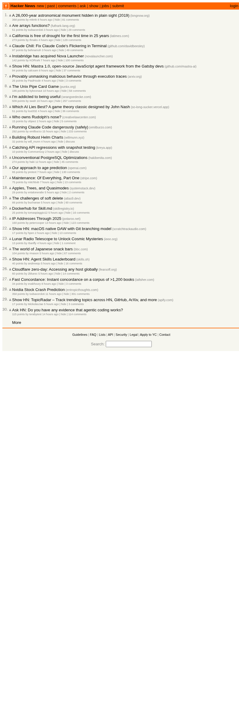 The body.innerText lists 30 Hacker News posts; none of the titles or sources include the word 'brightwheel'. Therefore, there is no post about brightwheel.