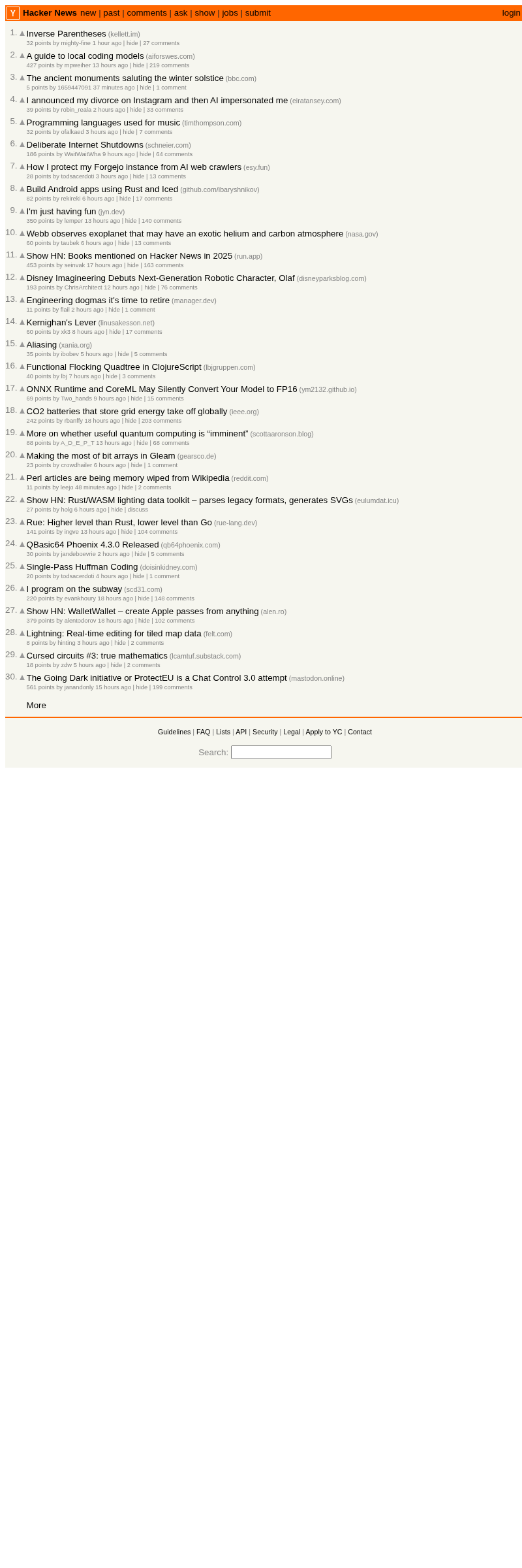 The listed Hacker News posts do not include any item mentioning 'brightwheel' in the title; only 30 posts are shown and none refer to brightwheel.