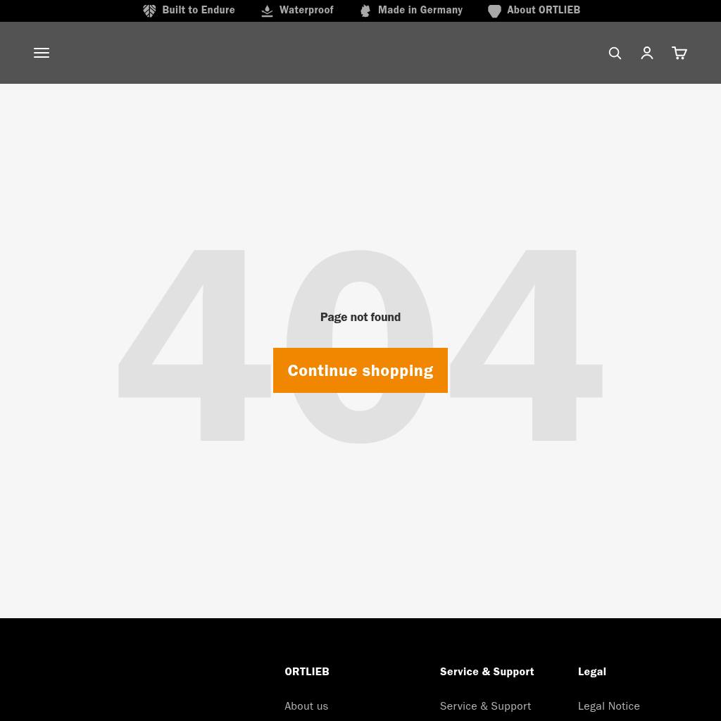 The webpage displays a "Page not found" message with a large "404" and a "Continue shopping" button. This indicates that the specific product page, likely including the M6 thru-axle product, is not available or accessible. Therefore, I cannot determine that the product is available for purchase based on this screenshot.